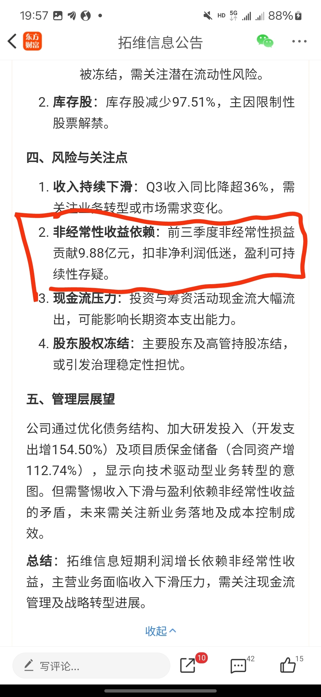 小心明天冲高套人,不要只关注归母净利润,政府补贴和投资收益提供了很大利润,但这种