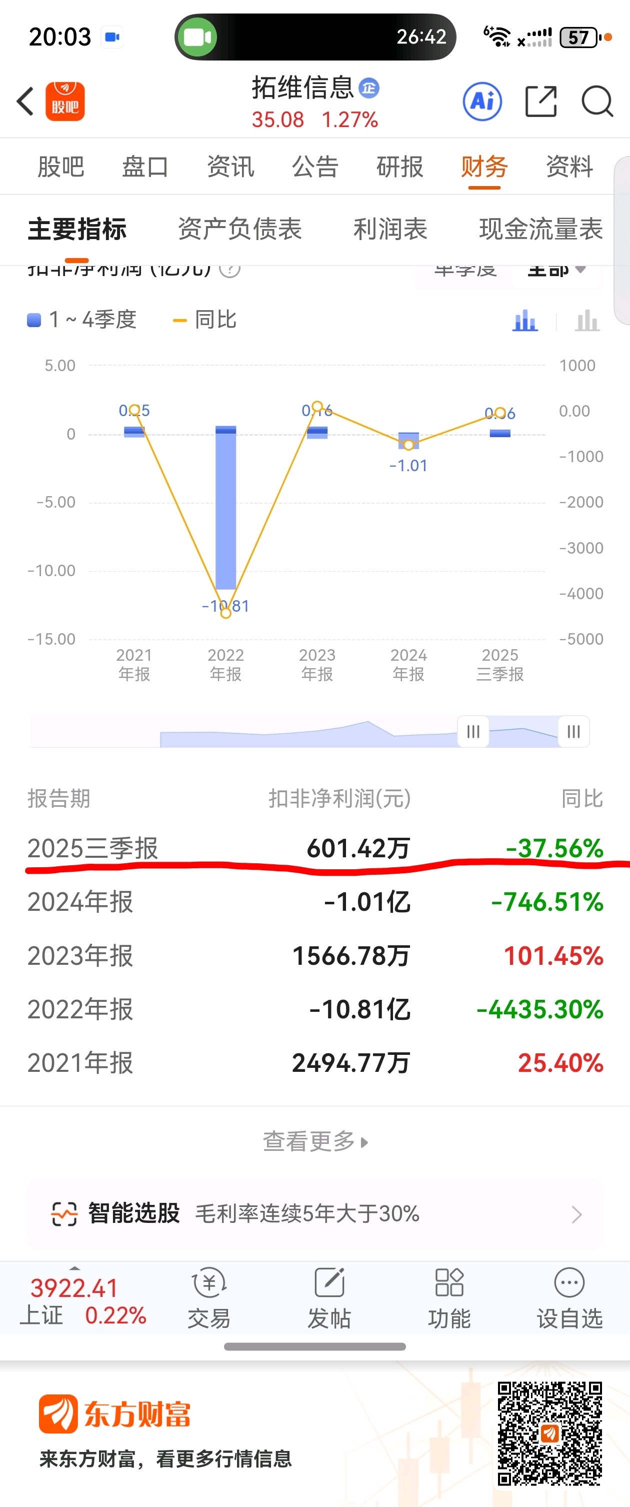 $拓维信息(SZ002261)$ 营业收入同比下降29.43,扣非净利润同比下降37.56,三季报偏利空