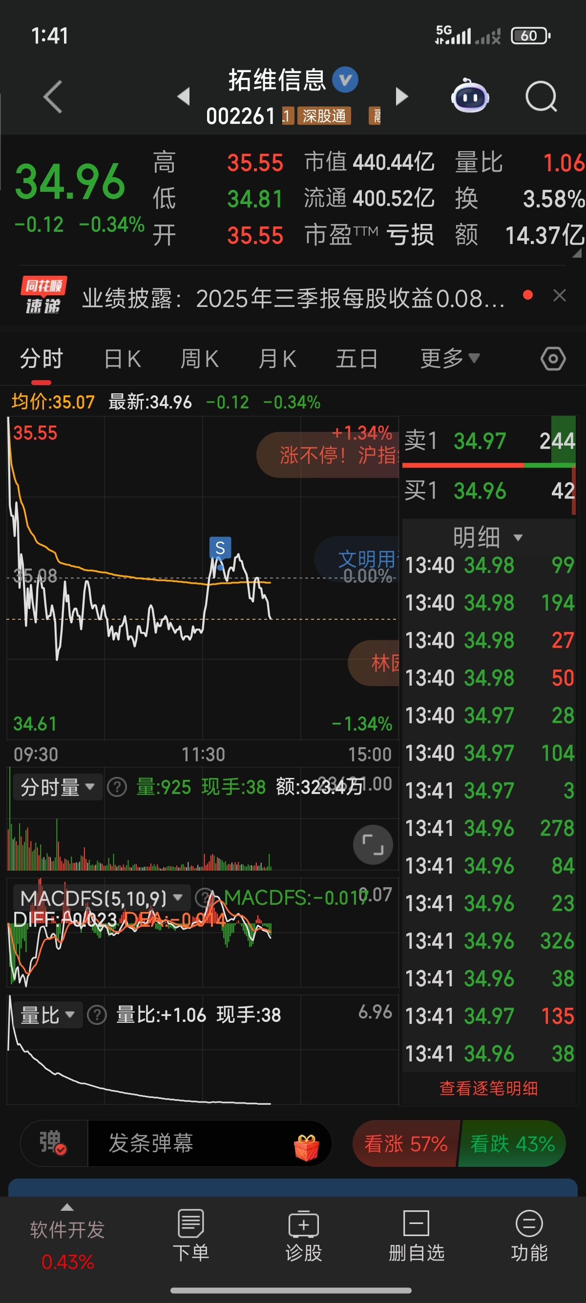 $拓维信息(SZ002261)$ 留下发财,公司盈利不行,纯补贴的业绩