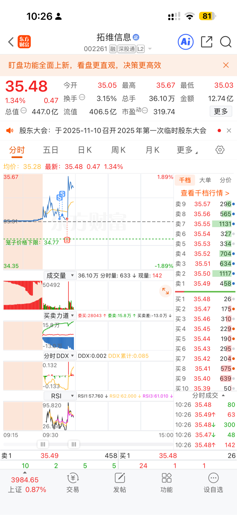 $拓维信息(SZ002261)$ t了2分钱,差点卖飞了