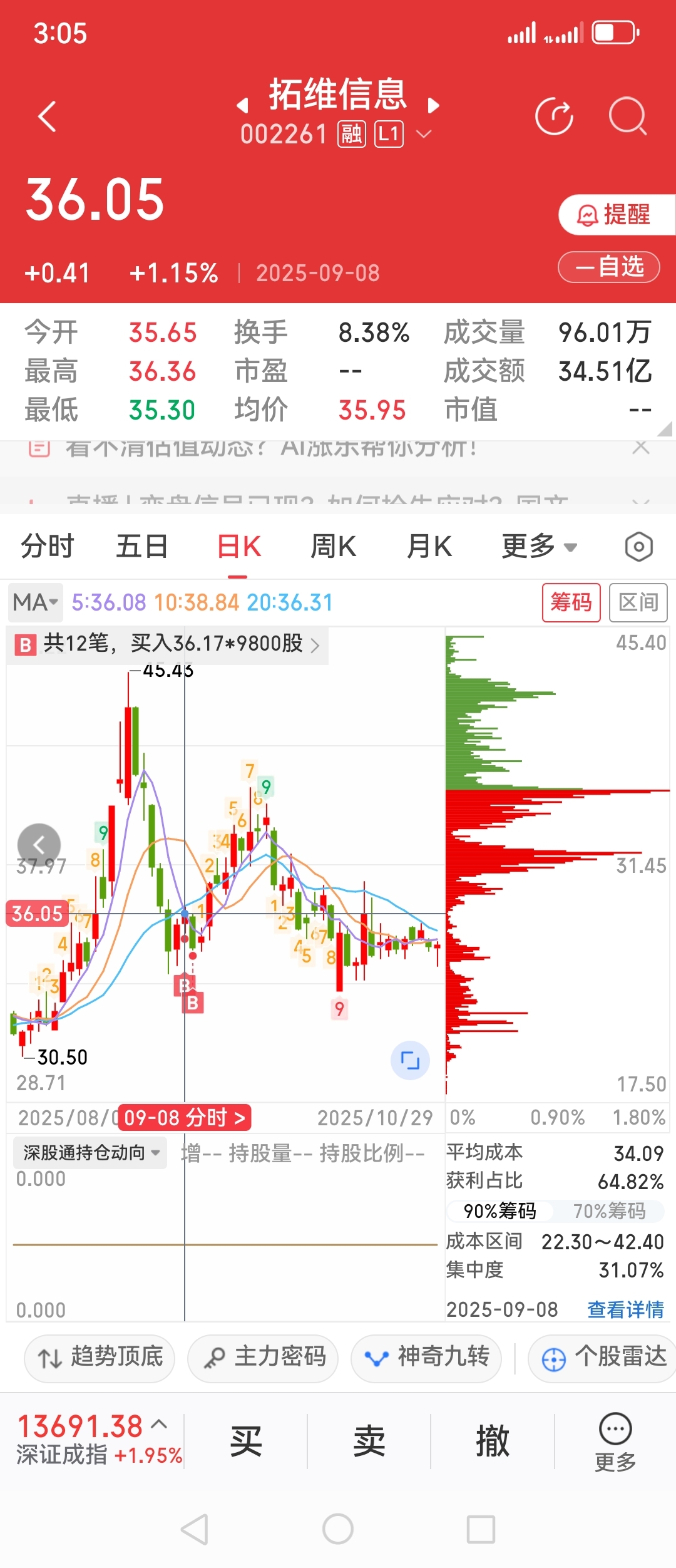 $拓维信息(SZ002261)$ 涨到39没卖,好后悔