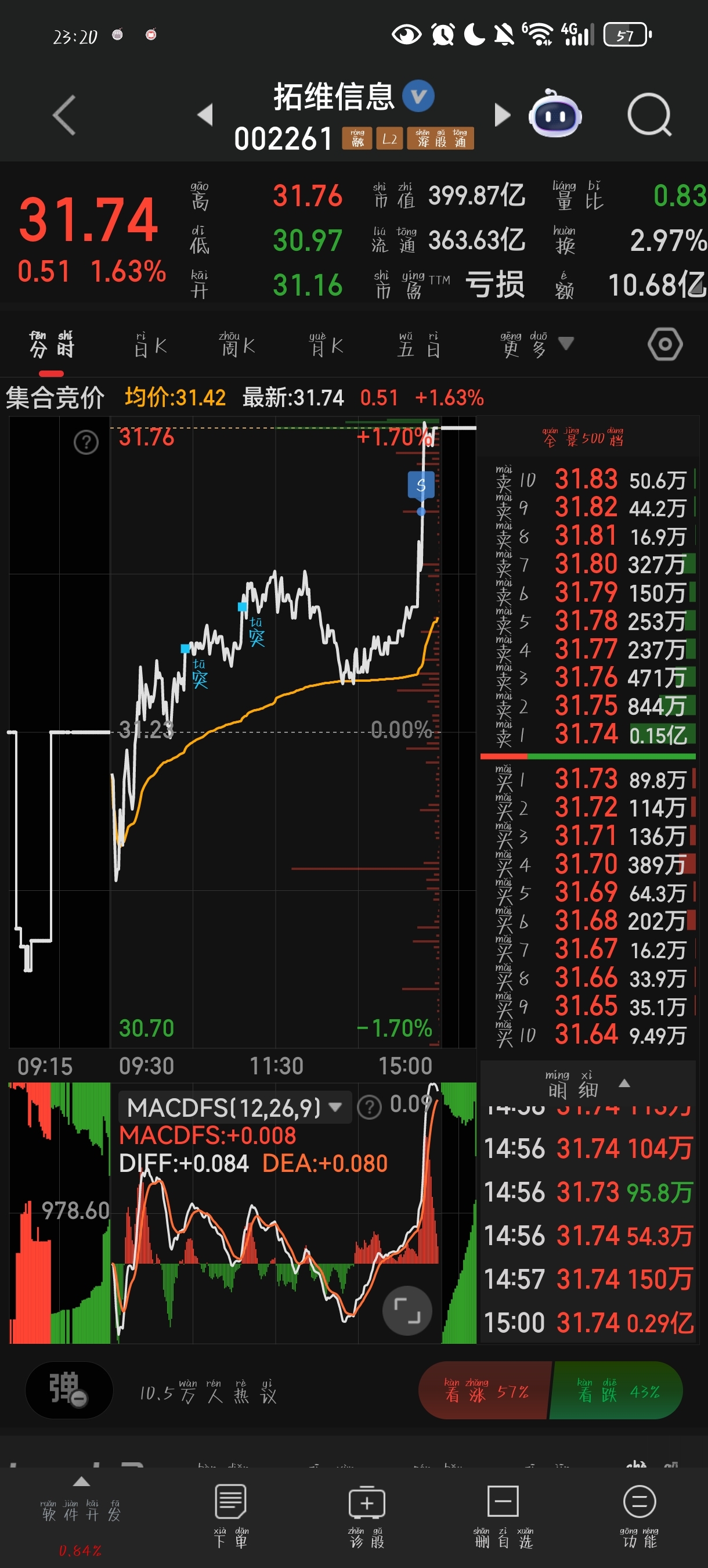 $拓维信息(SZ002261)$ 恭喜还在坚持的朋友,明天要吃肉了,遗憾的是我下车了