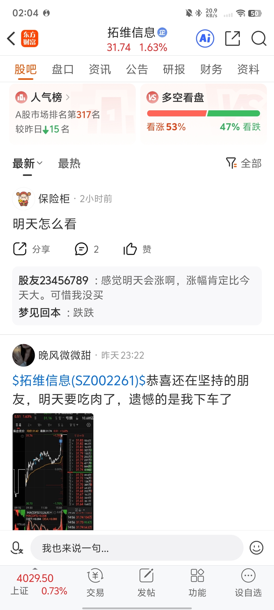 $拓维信息(SZ002261)$ 多空看法相近,说明是分歧盘,分歧有红盘和绿盘,也就是所谓的多空对弈#炒股日记#
