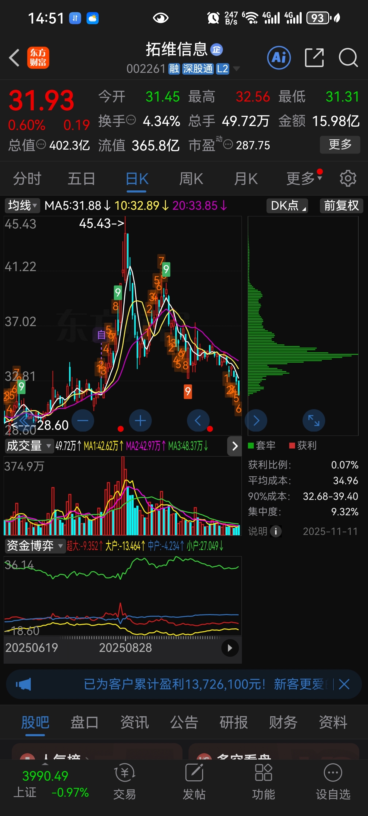 $拓维信息(SZ002261)$ 全是套牢盘,你们还在幻想有哪个慈善庄家来解救么?