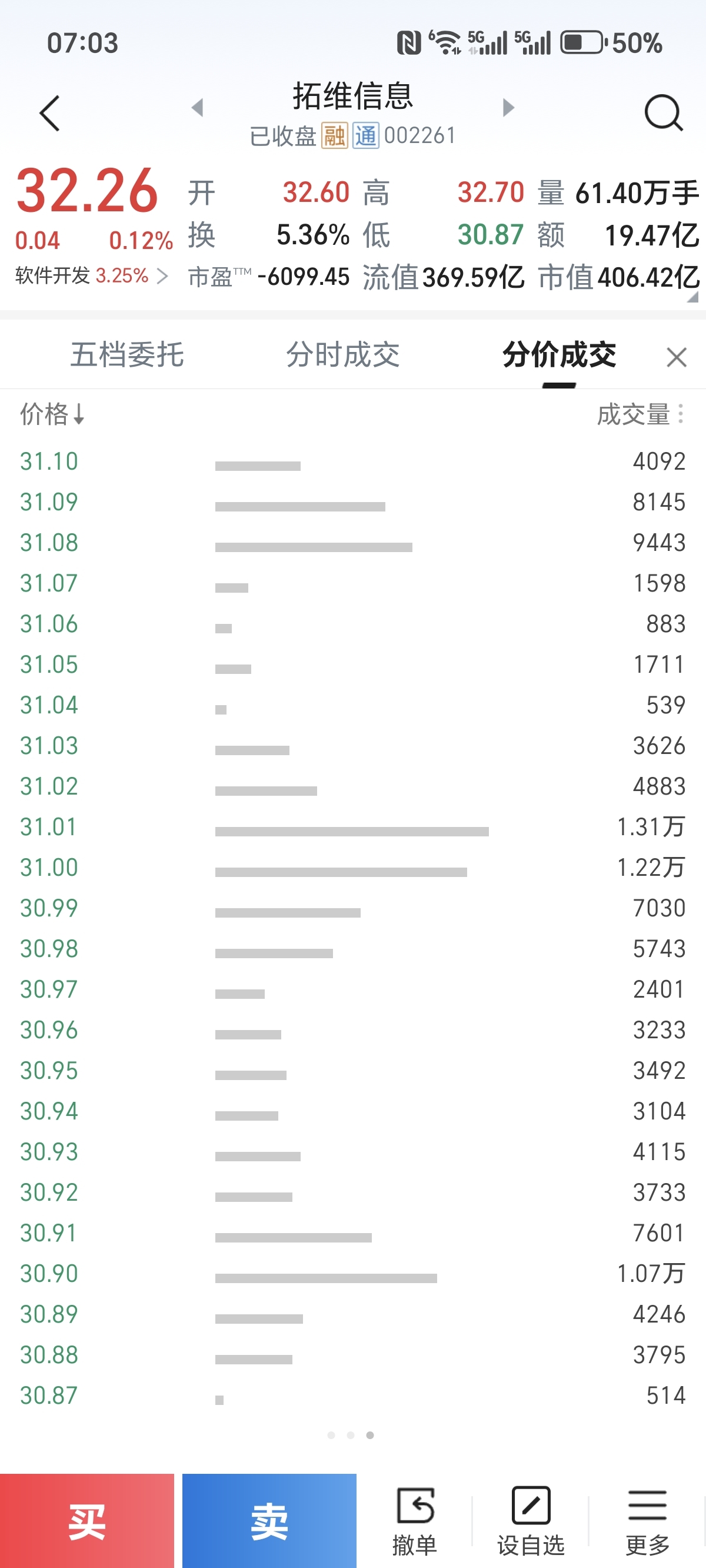 分价显示昨天在31以下的位置出现大量恐慌抛盘