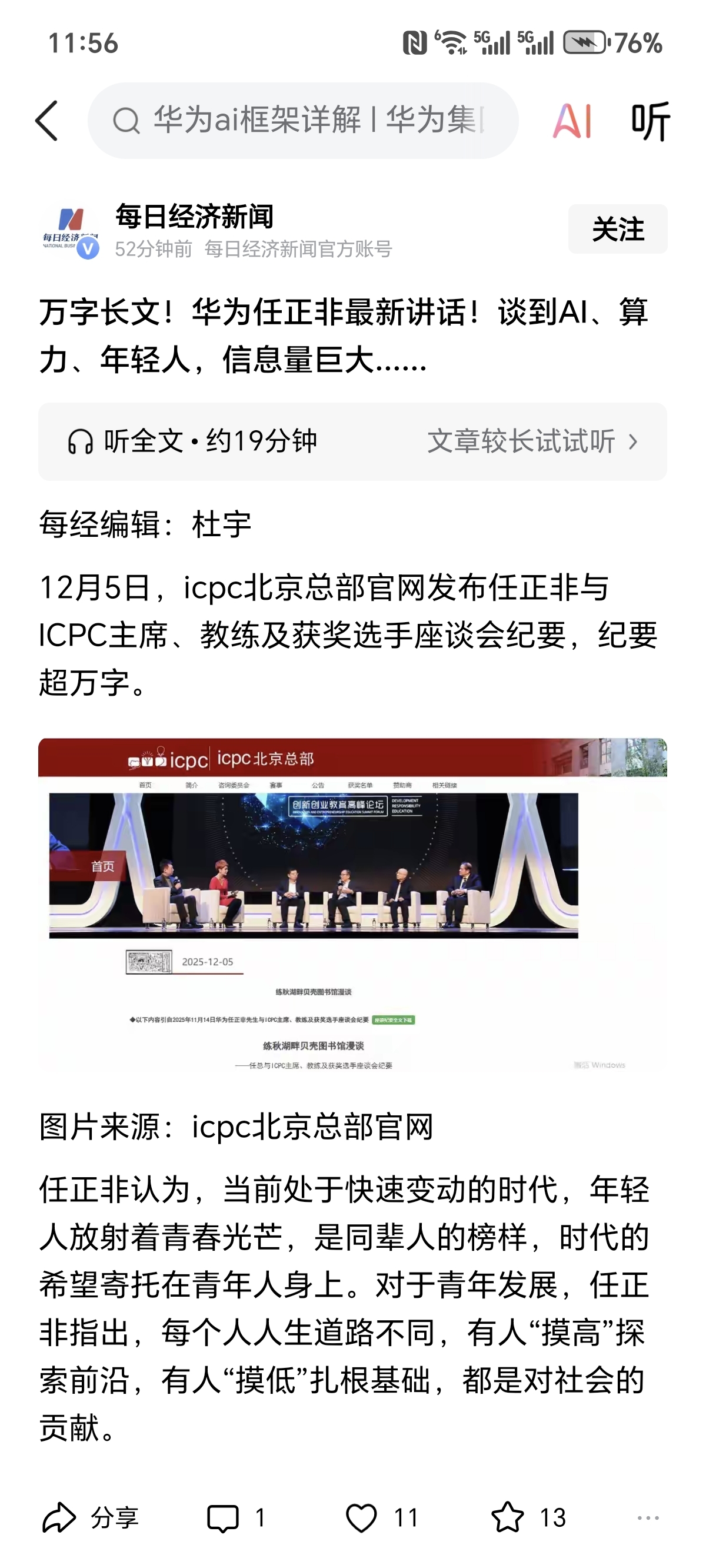 兄弟们,你们去搜下任正非最新关于Ai讲话,半个小时前才爆出来,看看有什么想法儿,