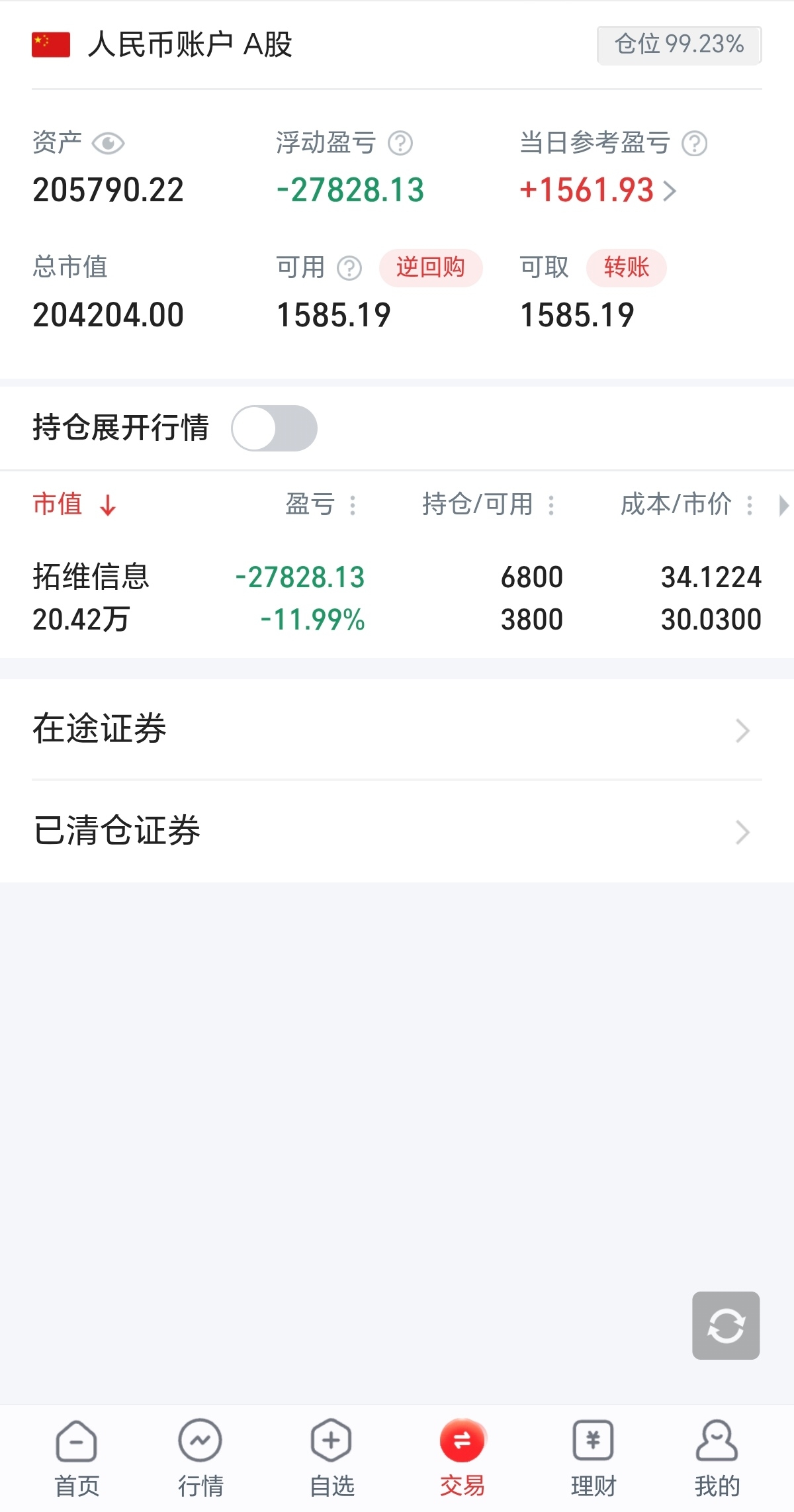 10月10日进来的,成本当时35.98,全仓干进来的,知道犯错误了,疯狂做T自救,都做到33.94了,今下午让小日本干扰了,亏了不少,到34.12了