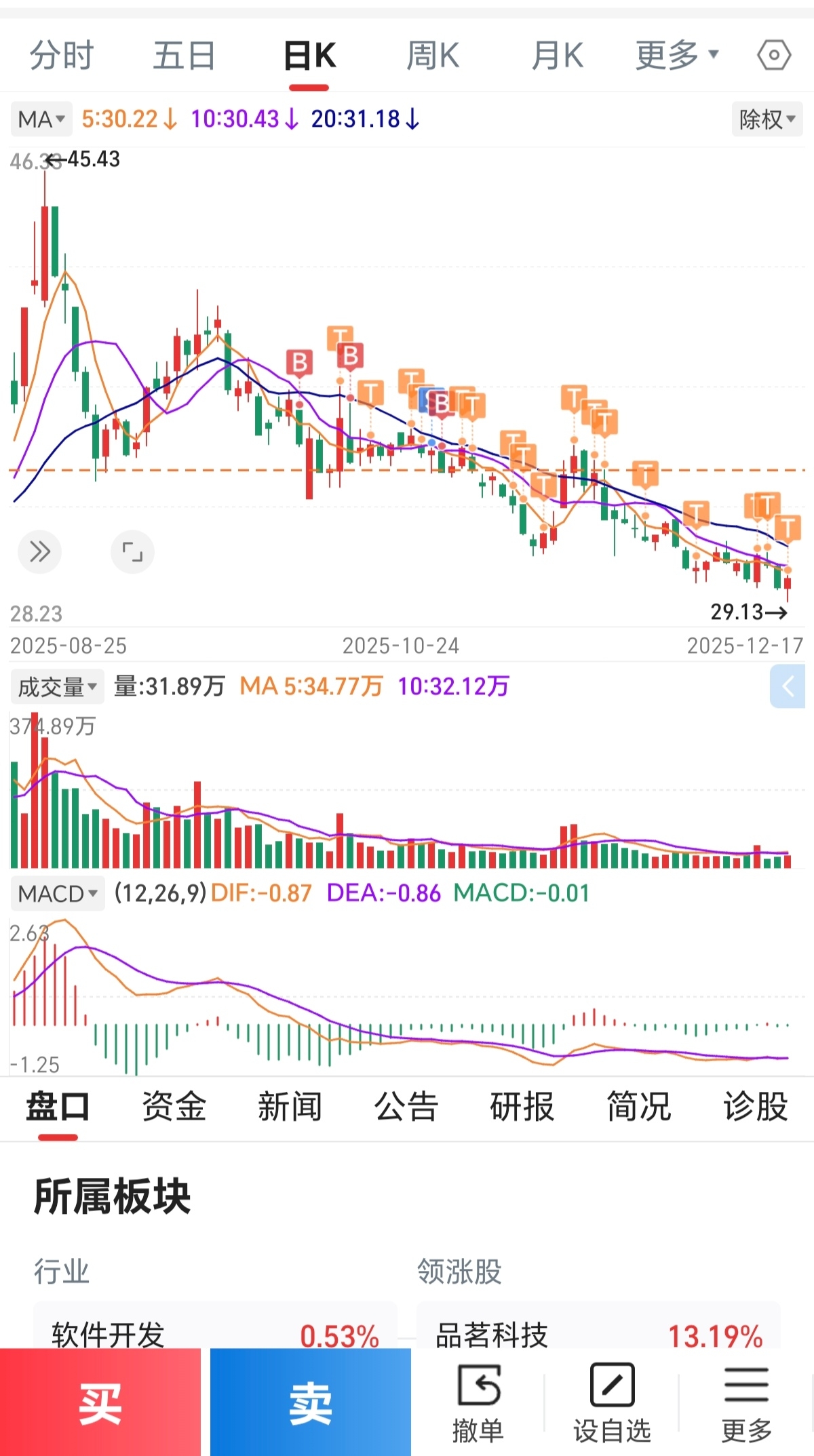 10月10日进来的,成本当时35.98,全仓干进来的,知道犯错误了,疯狂做T自救