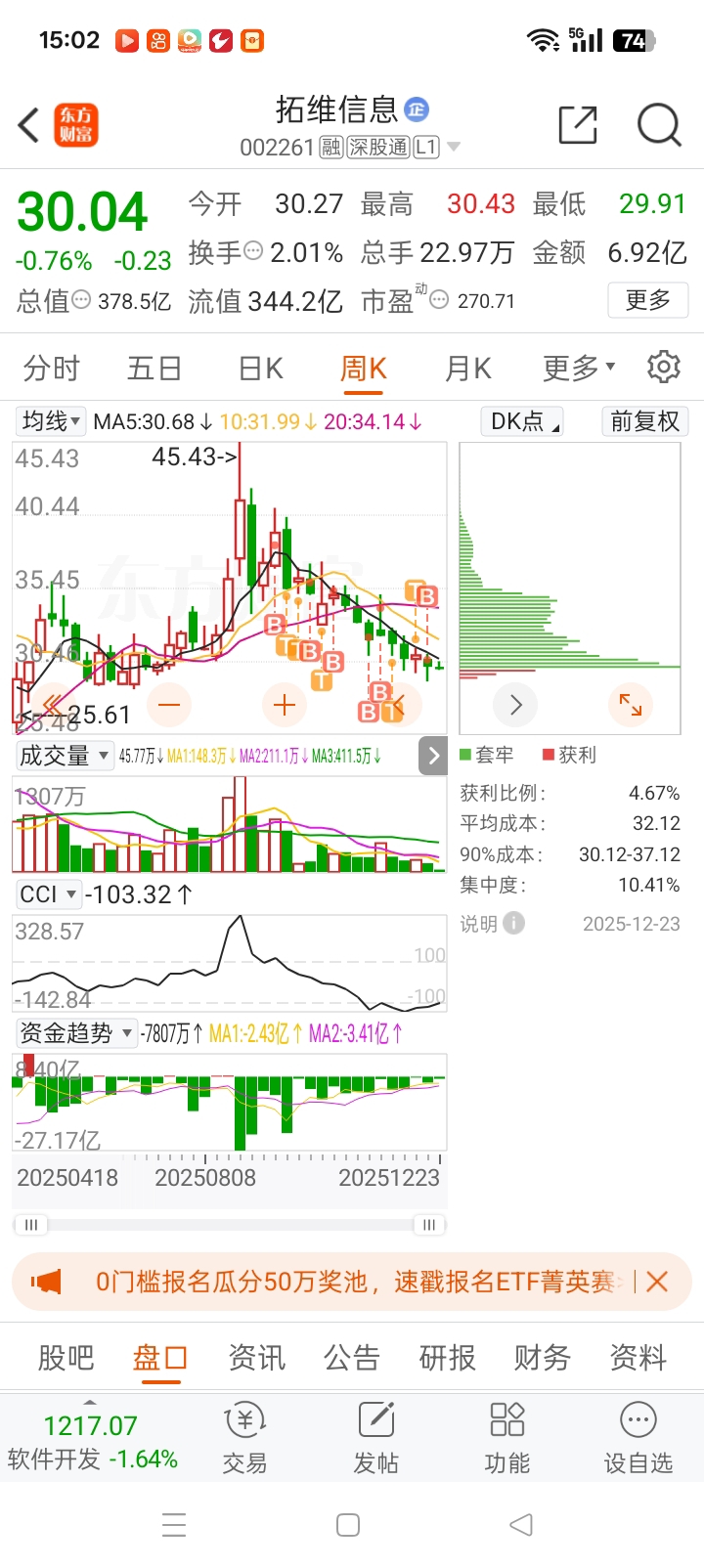 $拓维信息(SZ002261)$ 不想说话,已经躺平补不动了,钱再多也经不住这样跌