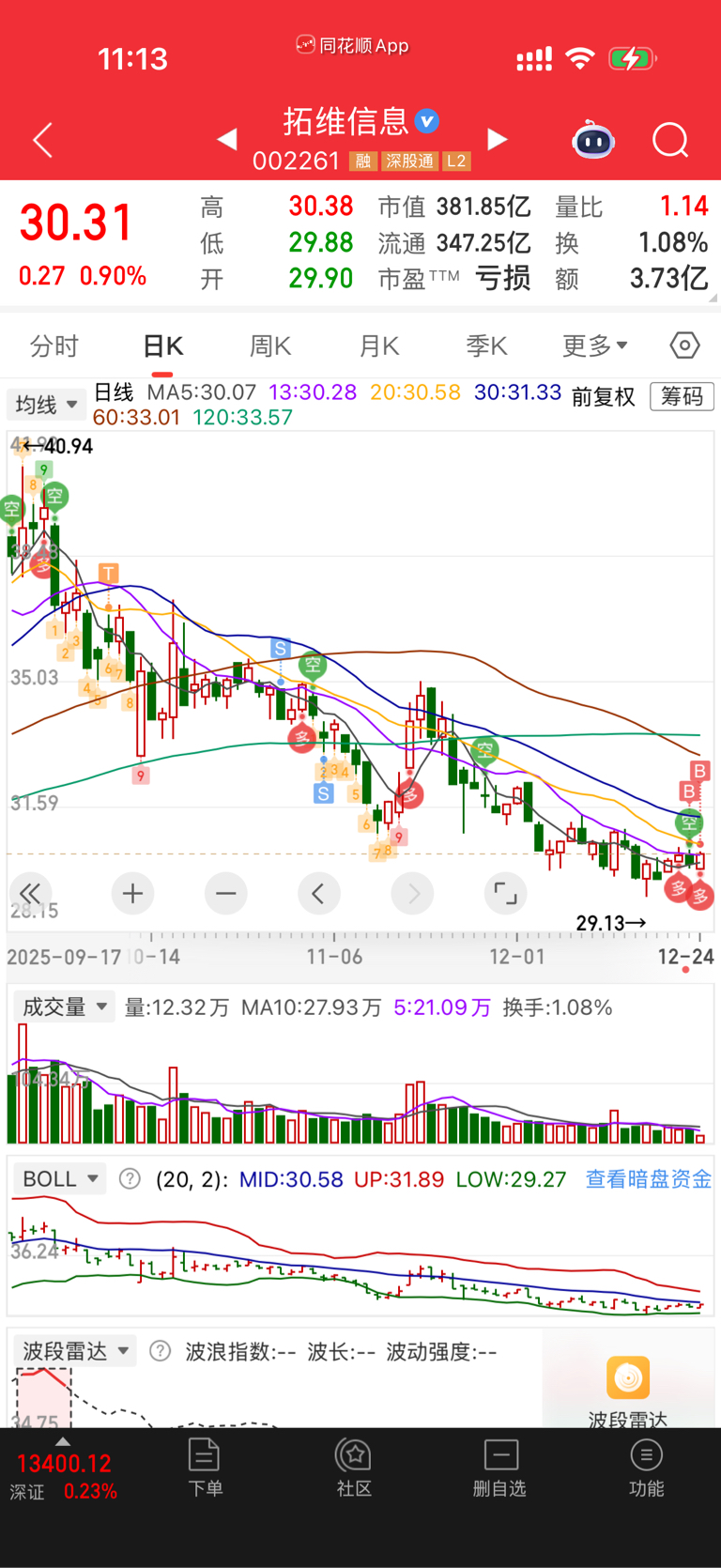 $拓维信息(SZ002261)$ 底部磨得差不多了,重新接回一点,你是时候站上20日线了!!