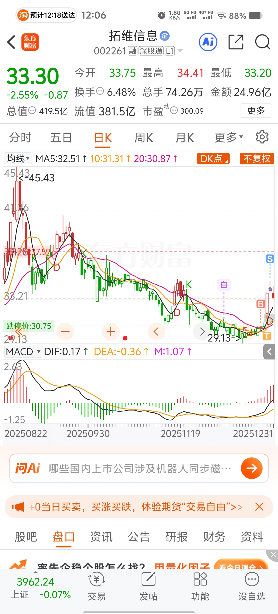 $拓维信息(SZ002261)$ 这个里面的机构坏。兄弟们,格局个啥?下午给我往下砸,往死里砸,先砸到那个缺口位置再说。天天低开低走,拉个槽子在那里慢慢震荡,让我们买,主力机构老坏了都,他们不买我们都别动。
