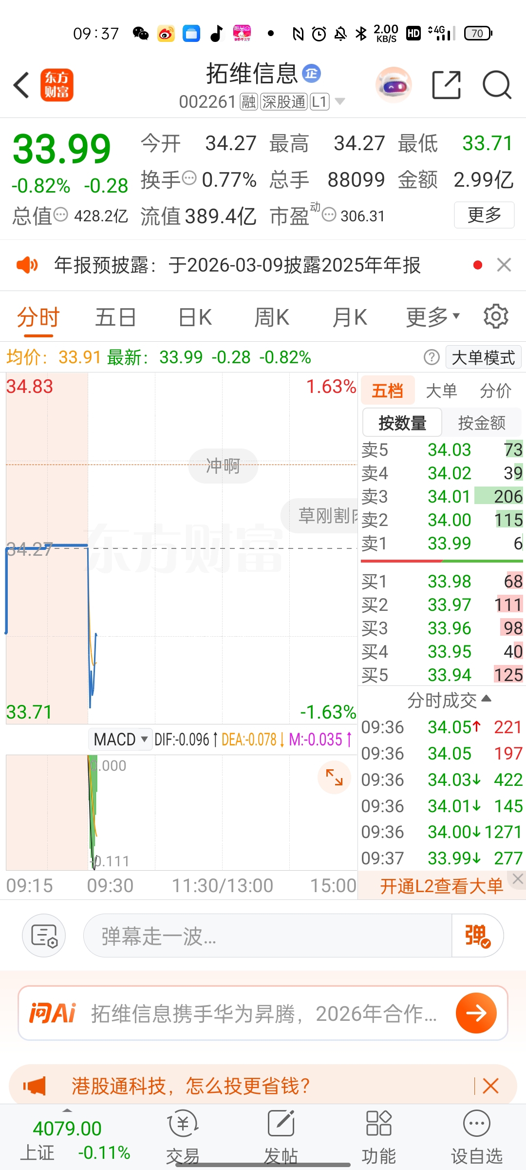 $拓维信息(SZ002261)$ 4个月了,马上就要回本了