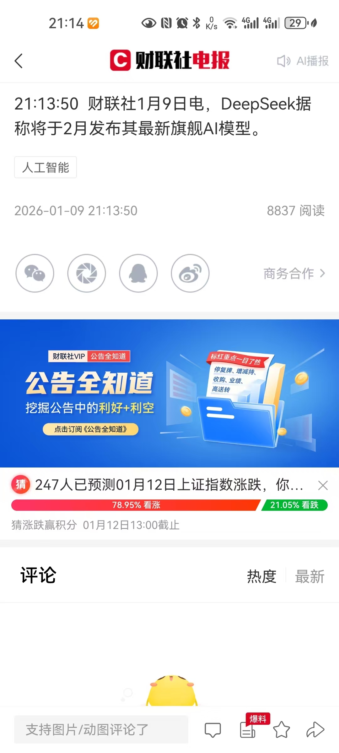 郑重声明:用户在财富号/股吧/博客等社区发表的所有信息(包括但不限于文字、视频、音频、数据及图表)仅代表个人观点,与本网站立场无关,不对您构成任何投资建议,据此操作风险自担。请勿相信代客理财、免费荐股和炒股培训等宣传内容,远离非法证券活动。请勿添加发言用户的手机号码、公众号、微博、微信及QQ等信息,谨防上当受骗!