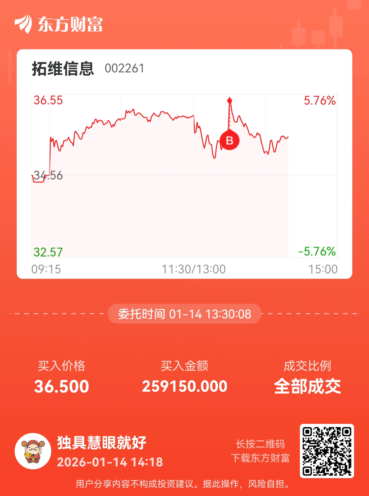 $拓维信息(SZ002261)感觉很危险为什么我不跑,因为我是追高进来的