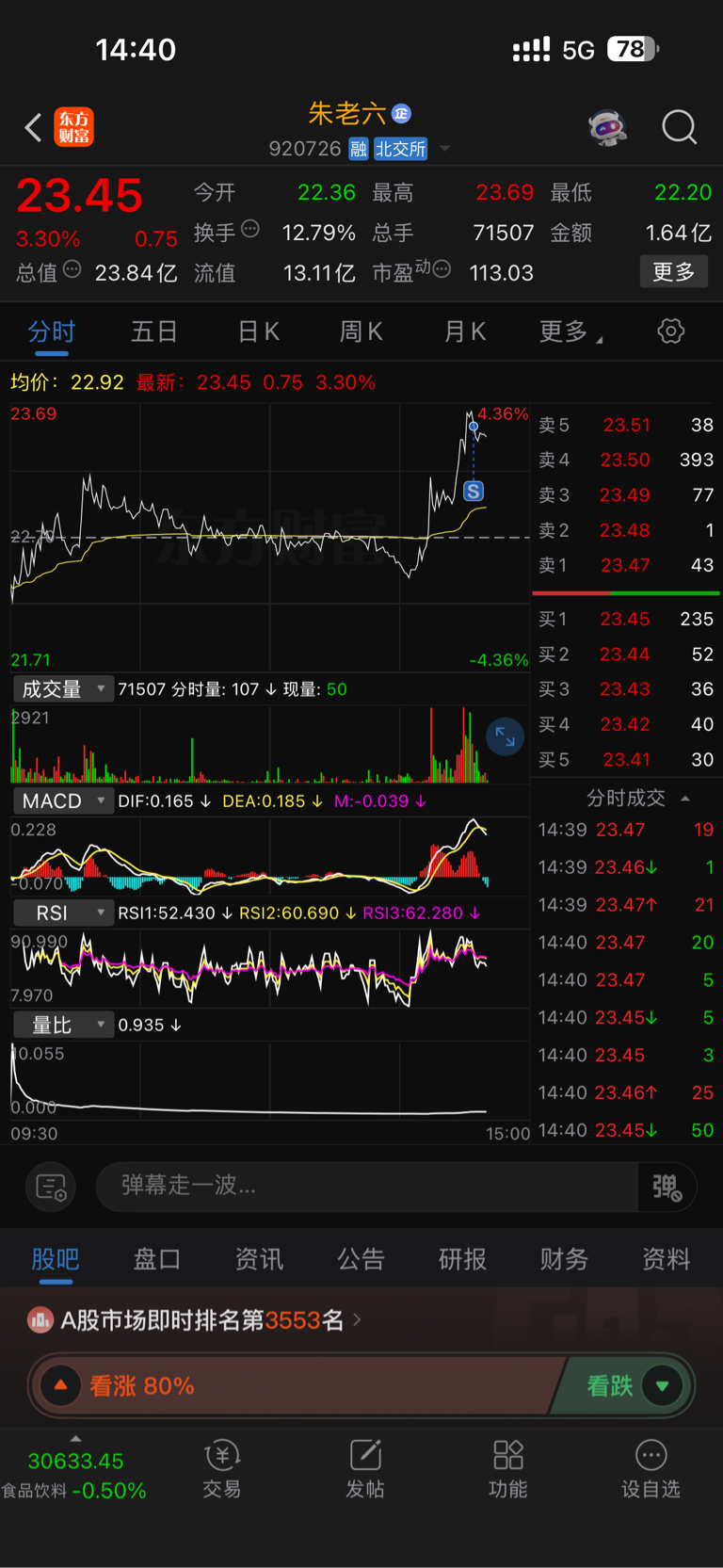 食品、商场下周滚动做t,今天卖掉一半,舒服了,嘿嘿嘿。