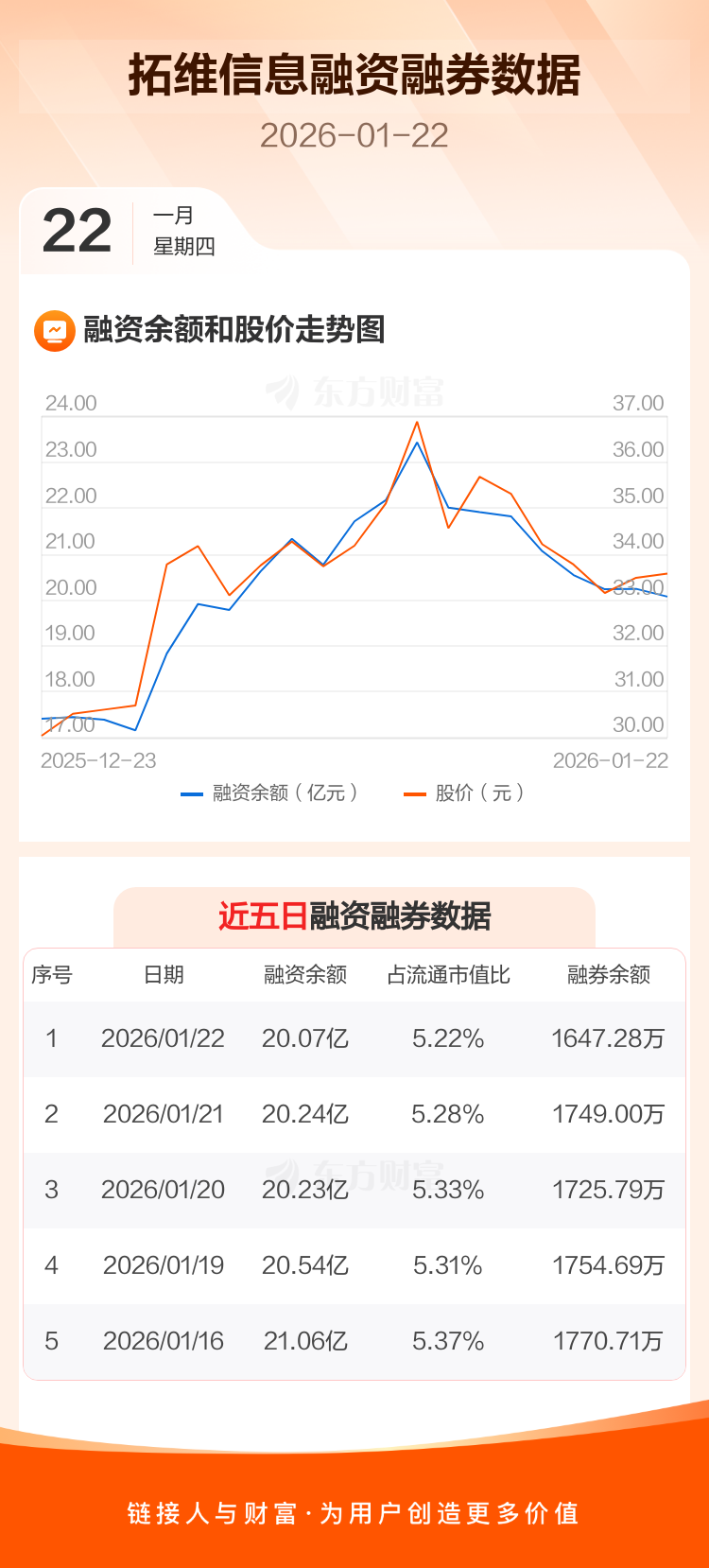 交易所最新数据显示,拓维信息于2026年1月22日获融资买入9694.83万元,融资偿还1.14亿元,当日融资净偿还1718.2万元。目前,该股融资余额20.07亿,占流通市值比例为5.22%。