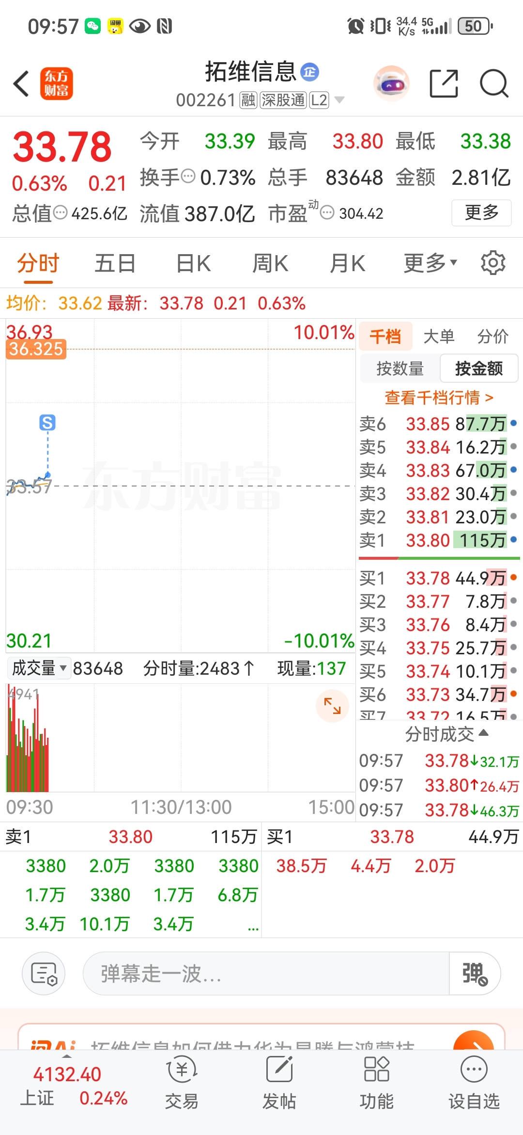$拓维信息(SZ002261)$ 拉吧,我走