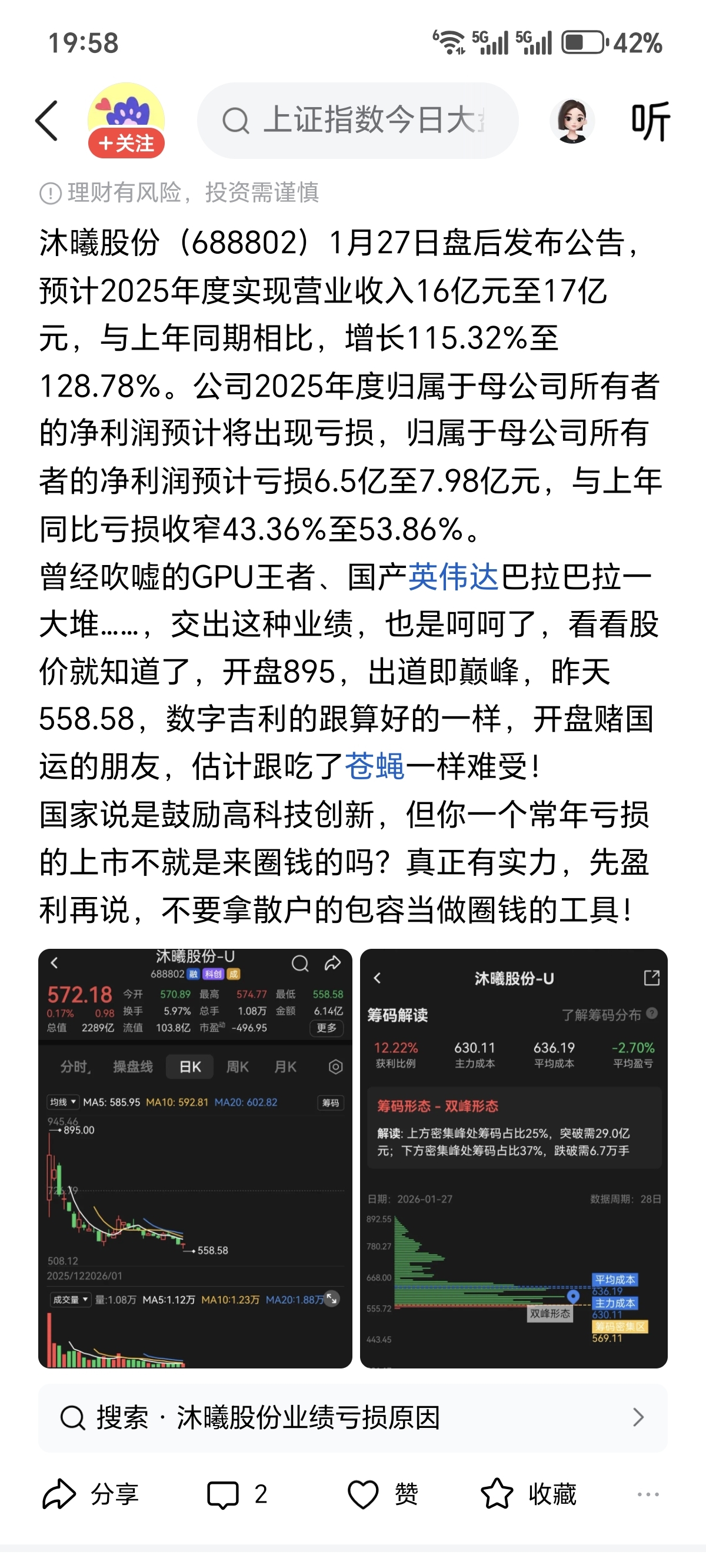 无须纠结,看看这两货,预报全亏损10个亿左右,预报出的第二天,股价什么反应也没有。我这两天看了很多Ai企业,盈利的很少,即使盈利也没多少,蓝标盈利两个亿而已,股价翻多少了,Ai是新兴产业,刚起步一年,不大面积亏损就可以了