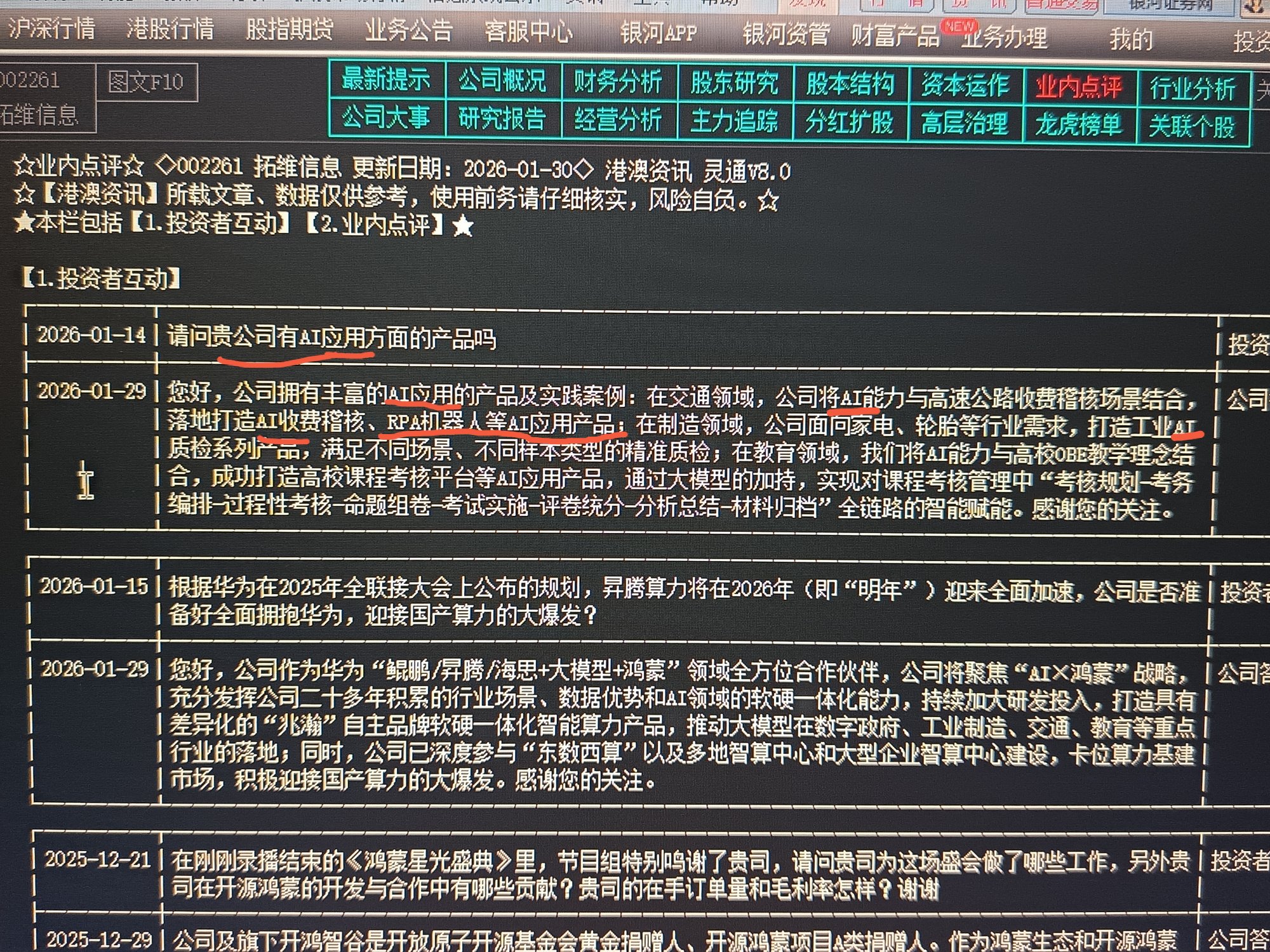 现在都热点AI应用产品,RPA机器人等电脑里投资者互动看到公司答复,为什么股票是