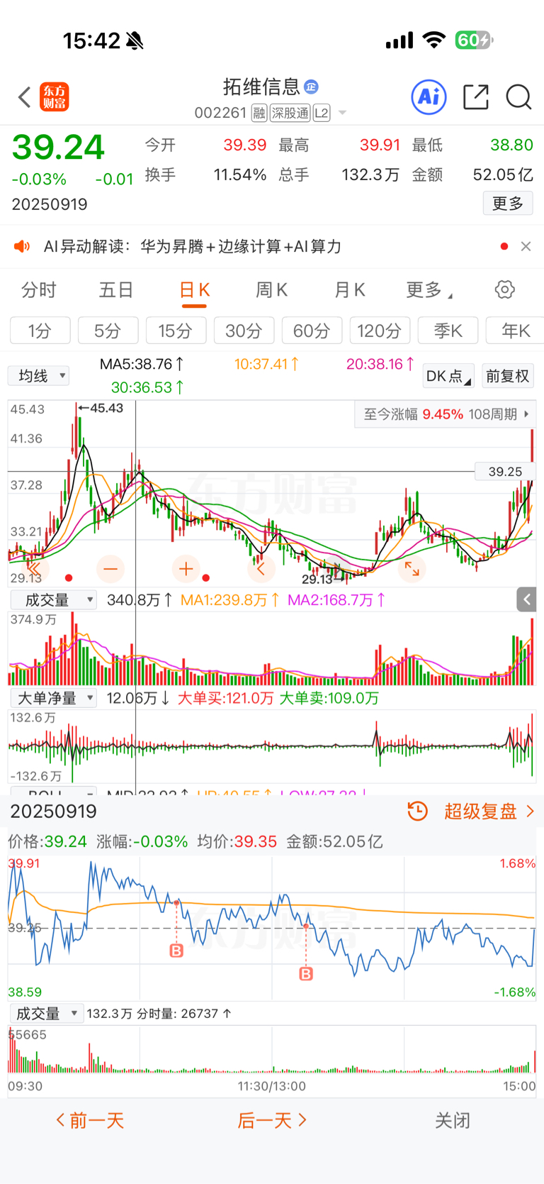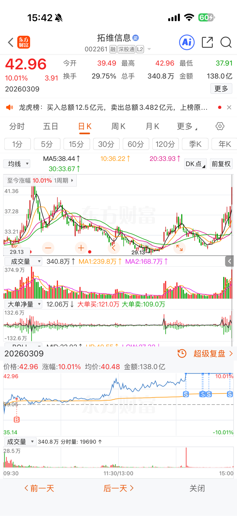 $拓维信息(SZ002261)$ 2025年9月19日建仓拓维,今天2026年3月9日清仓拓维,整整171天,追高建仓被深套,这171天实在太煎熬,最后还是坚持过来了,持股171天,感觉这个股票价格远不止于此,但是我想止盈休息了,从45块回调到30附近,再到现在的43附近,中间过程估计只有持股本人才能体会。