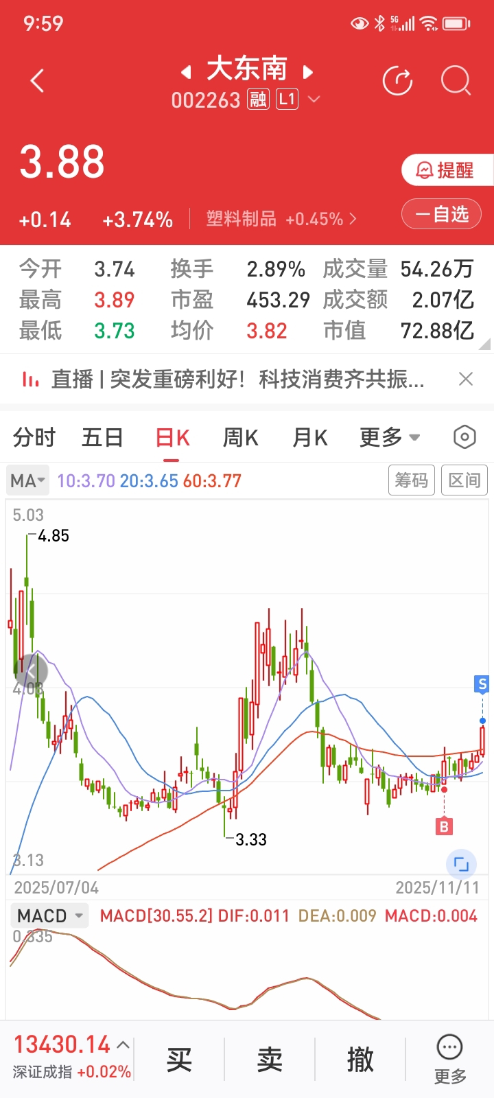 $大东南(SZ002263)$ 小玩意赚2毛知足