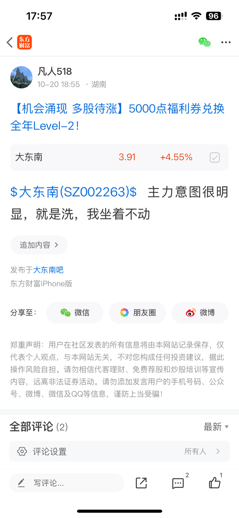 温馨提示: 1.根据《证券法》规定,禁止编造、传播虚假信息或者误导性信息,扰乱证券市场;2.用户在本社区发表的所有资料、言论等仅代表个人观点,与本网站立场无关,不对您构成任何投资建议。用户应基于自己的独立判断,自行决定证券投资并承担相应风险。《东方财富社区管理规定》