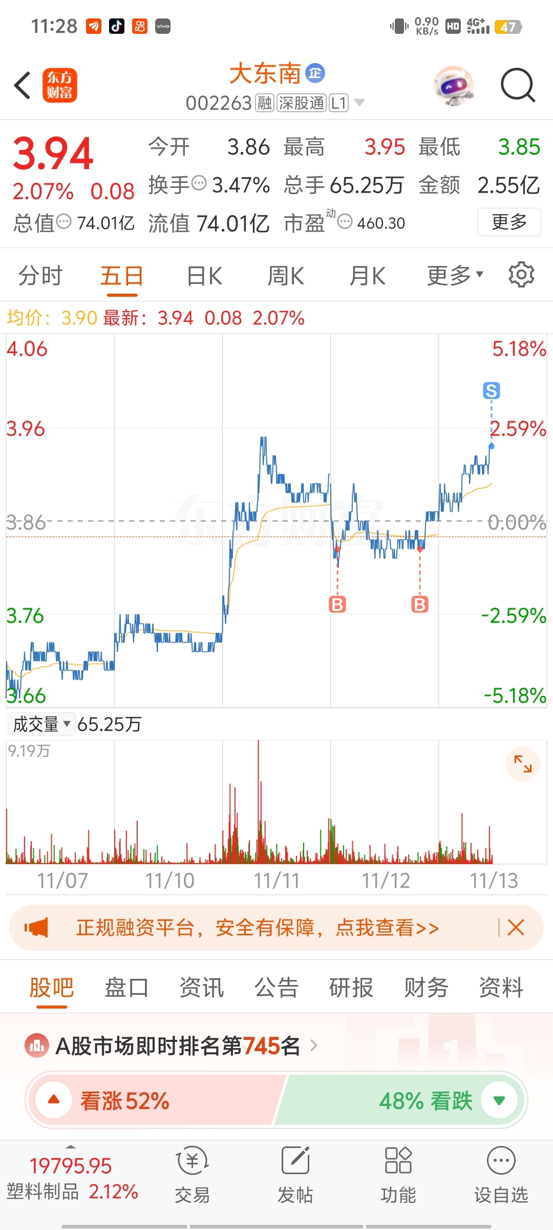 $大东南(SZ002263)$ 不知道啥原因,趋势挺好了 就是不想做它了。