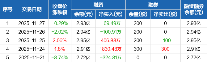 大东南:融资净偿还69.49万元,融资余额2.93亿元(11-27)