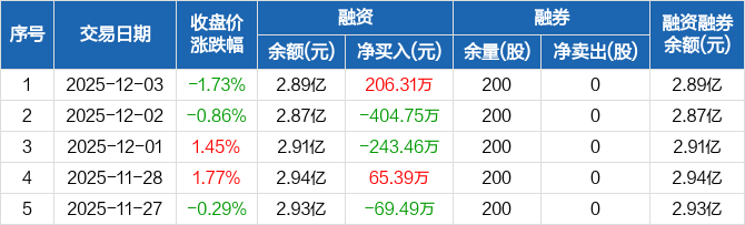 大东南:融资净买入206.31万元,融资余额2.89亿元(12-03)