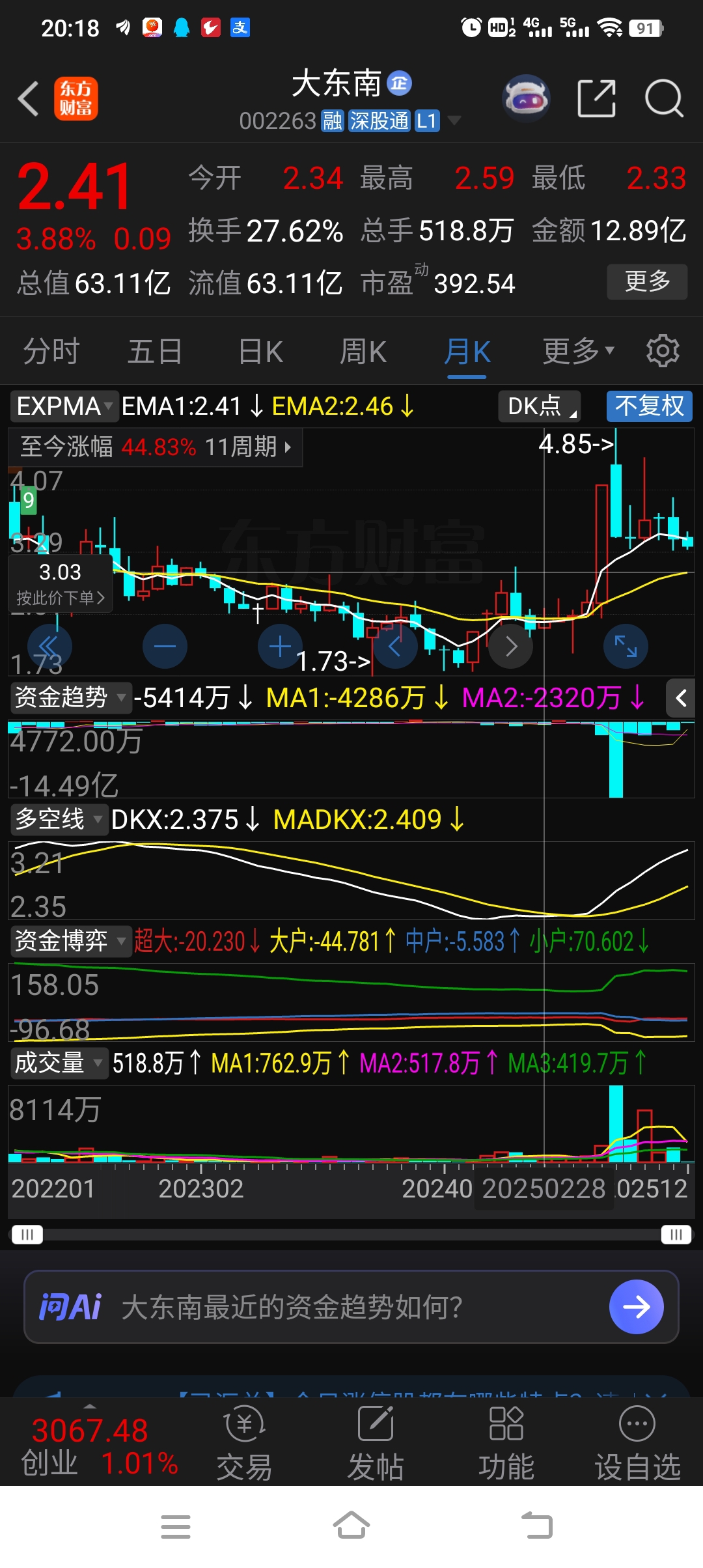 $大东南(SZ002263)$ 哪有一次不碰黄线的。黄线位置在3元。早往下打一打2.6元可以大仓博一博。前提是不会退市。。验证。