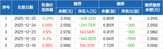 大东南:融资净偿还428.24万元,融资余额2.91亿元(12-25)