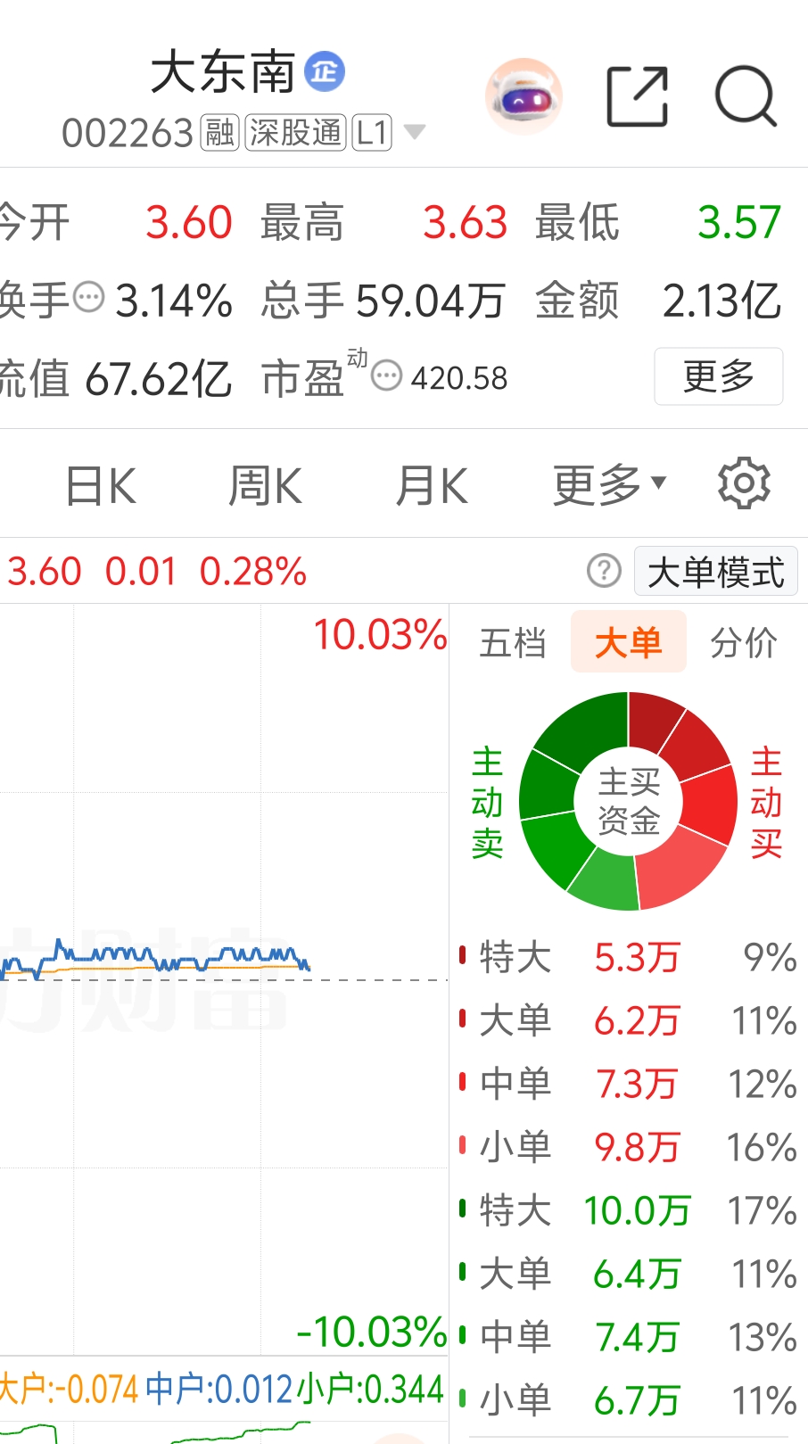 $大东南(SZ002263)$ 判断失误吗 主力跑路了