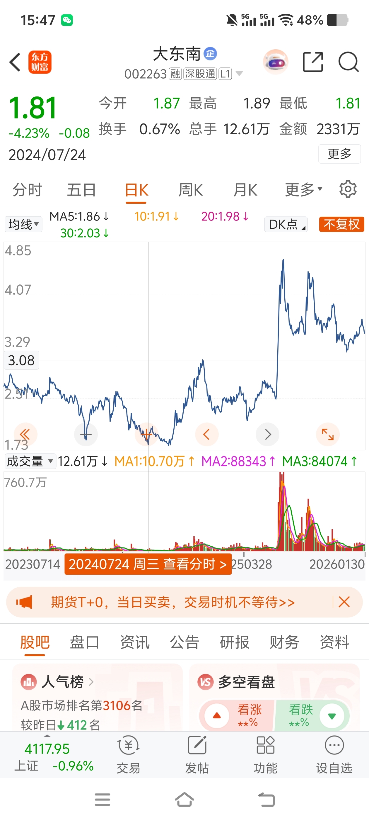 $大东南(SZ002263)$ 真搞不懂主力想干什么,辛辛苦苦操盘,难道就真的放弃了,难道真要去更低的支撑位,也是没谁了