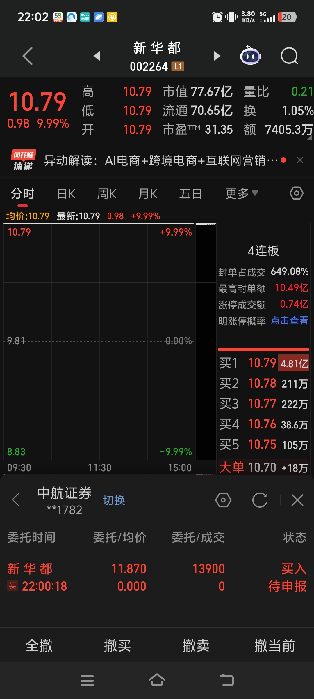 $新 华 都(SZ002264)$ 兄弟们,我来了,今天没有排进去,今天继续