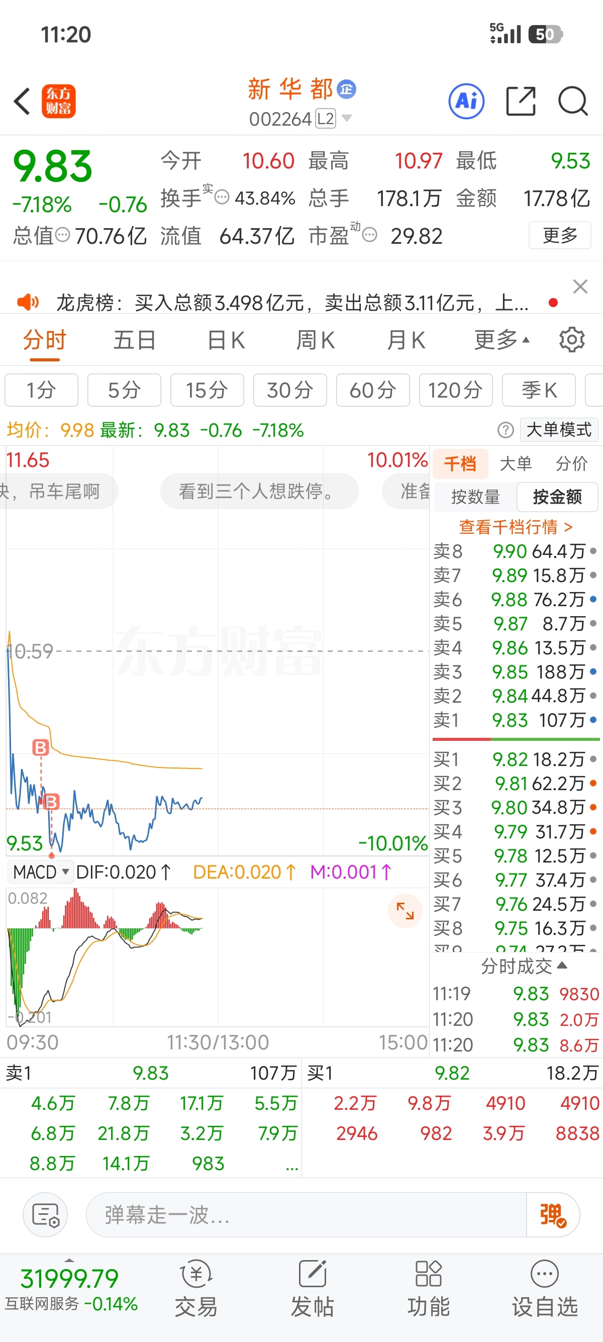 $新 华 都(SZ002264)$ 跌停板又加了点,不信你不涨。