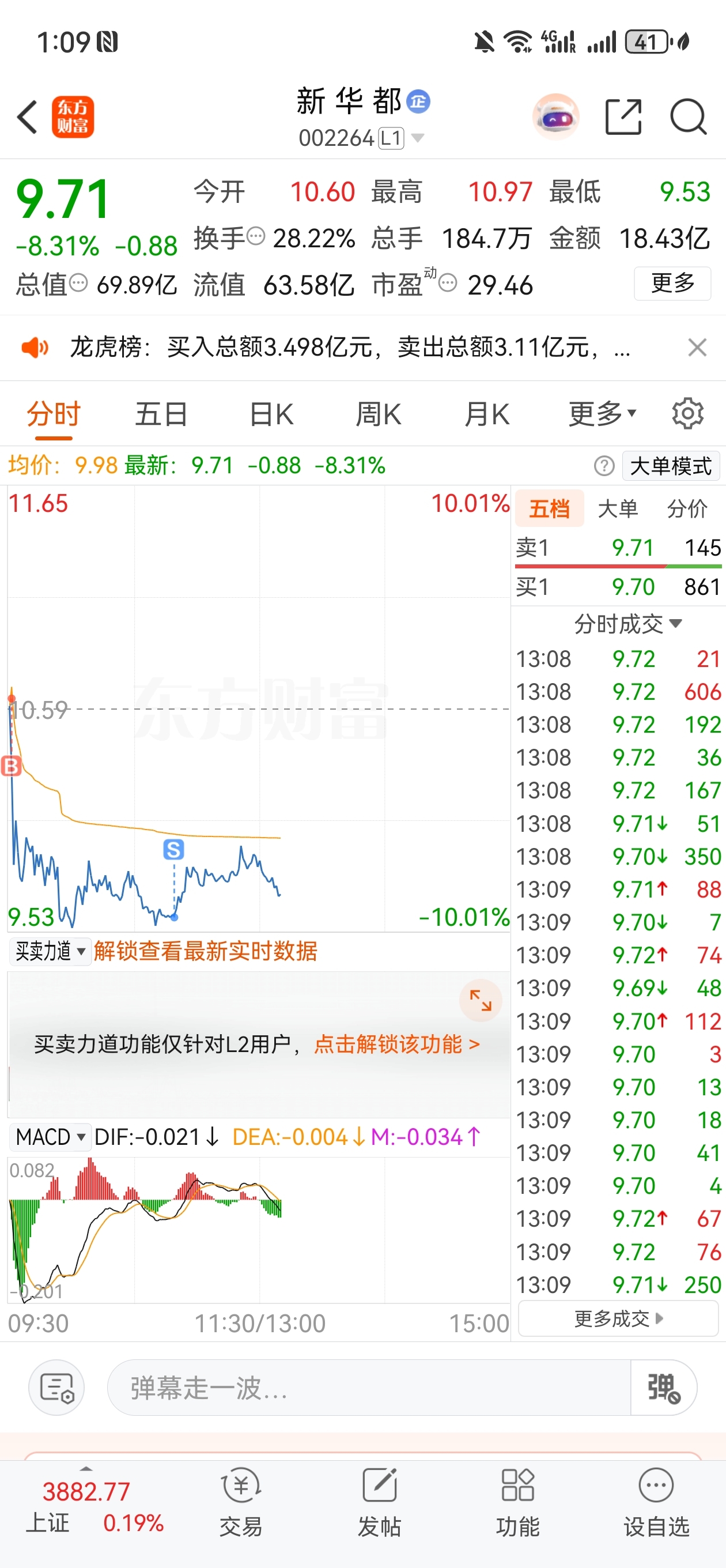 $新 华 都(SZ002264)$ 昨天尾盘买了 感觉要反包,今天竞价弱转强这么玩 和这主力犯冲 走了