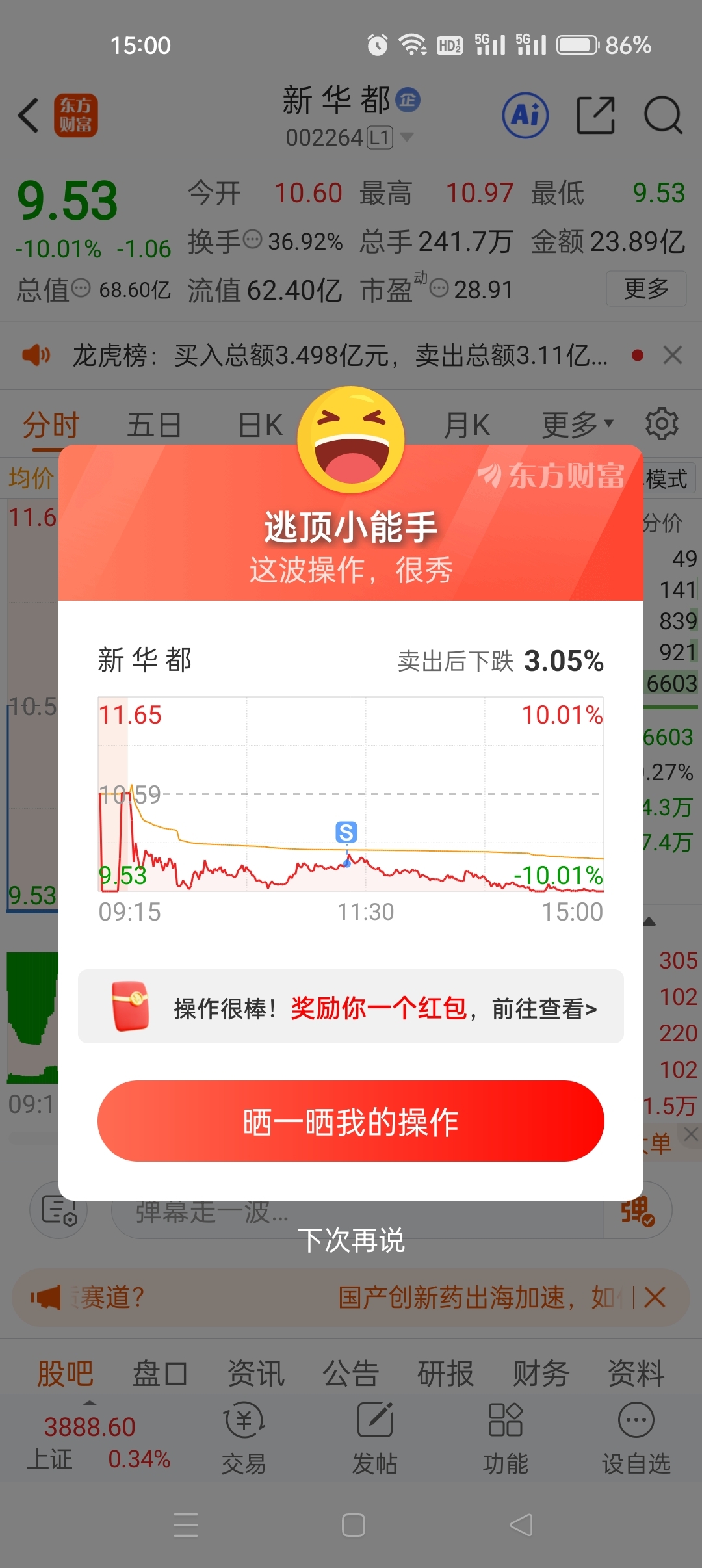 $新 华 都(SZ002264)$ 不是,昨天打板买的,你这个逃顶小能手……难评