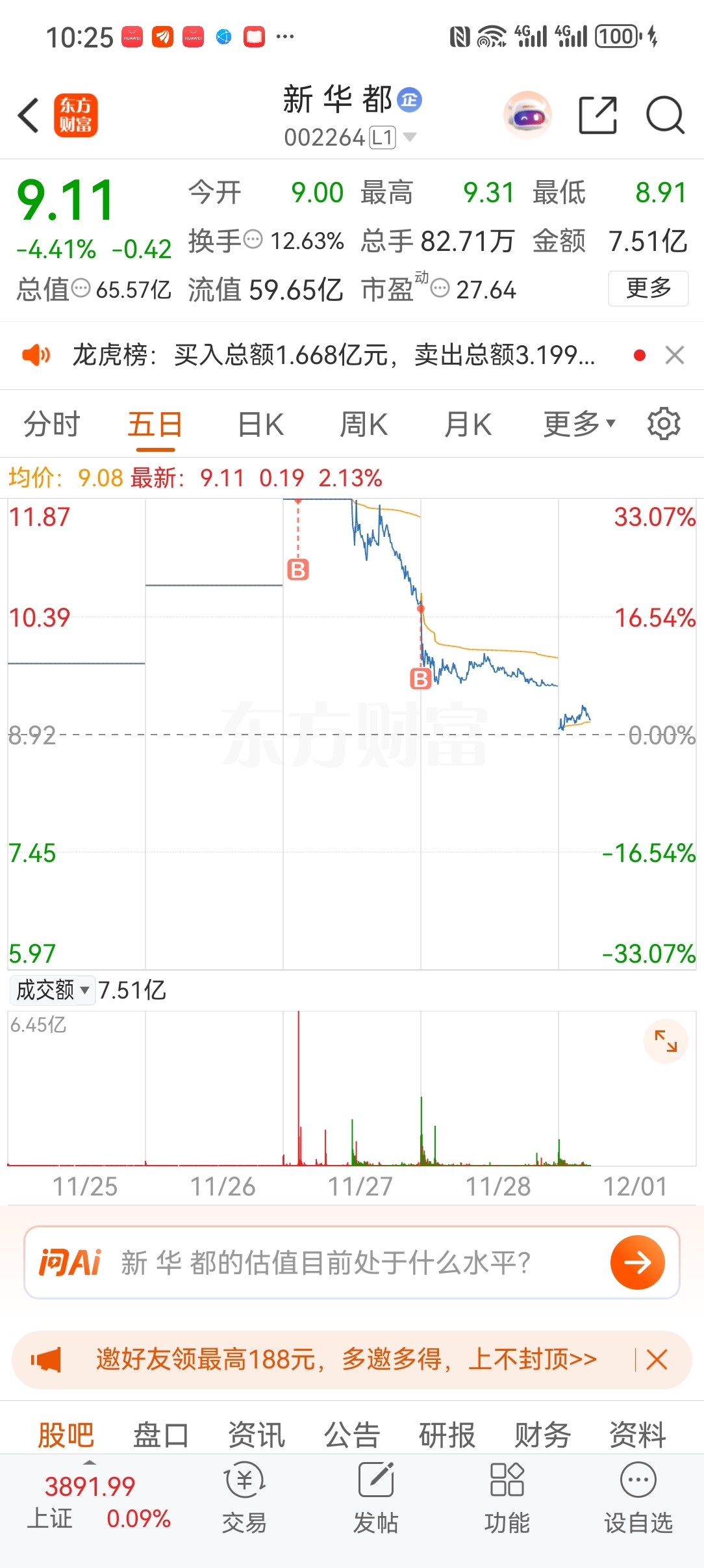 $新 华 都(SZ002264)$ 看来我真的被套牢了。