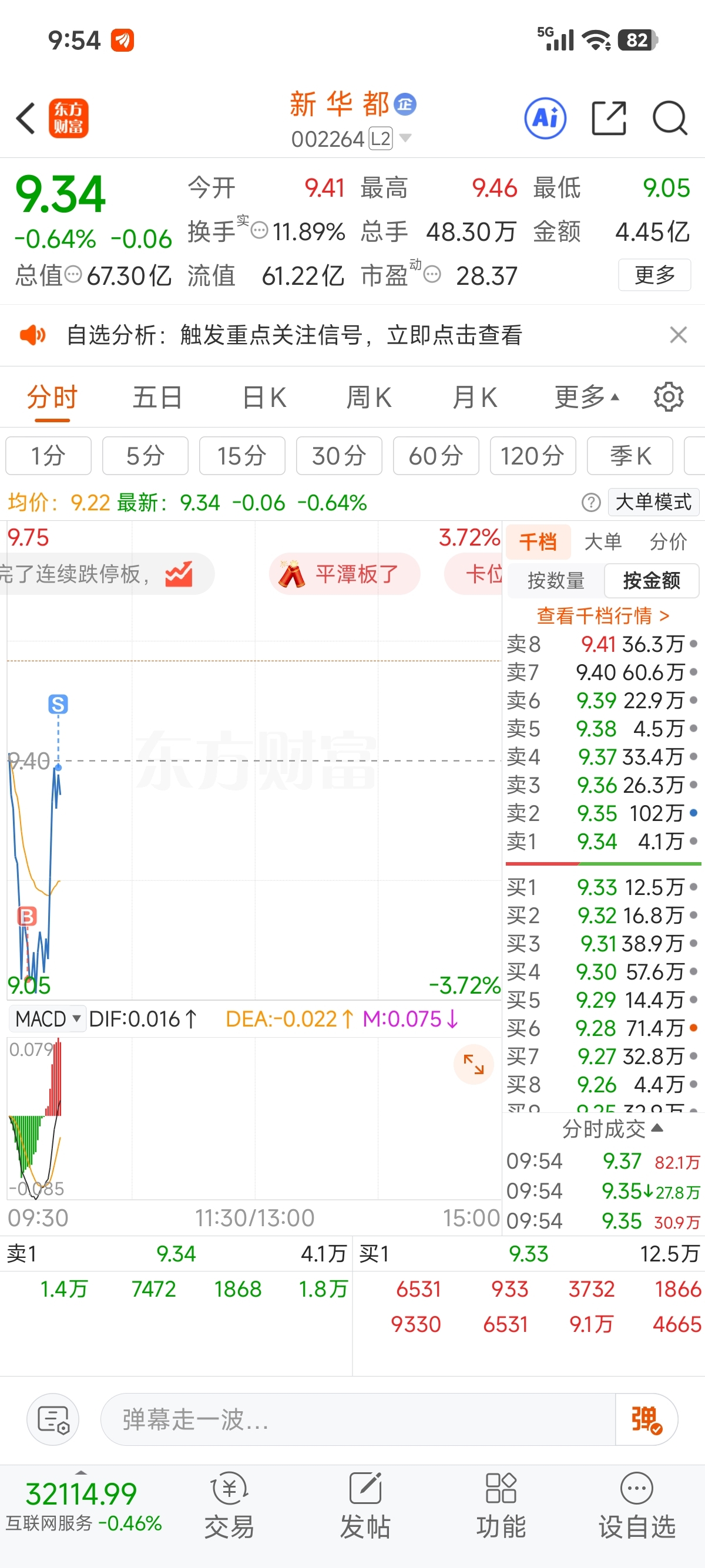 $新 华 都(SZ002264)$ 9.39又T掉了