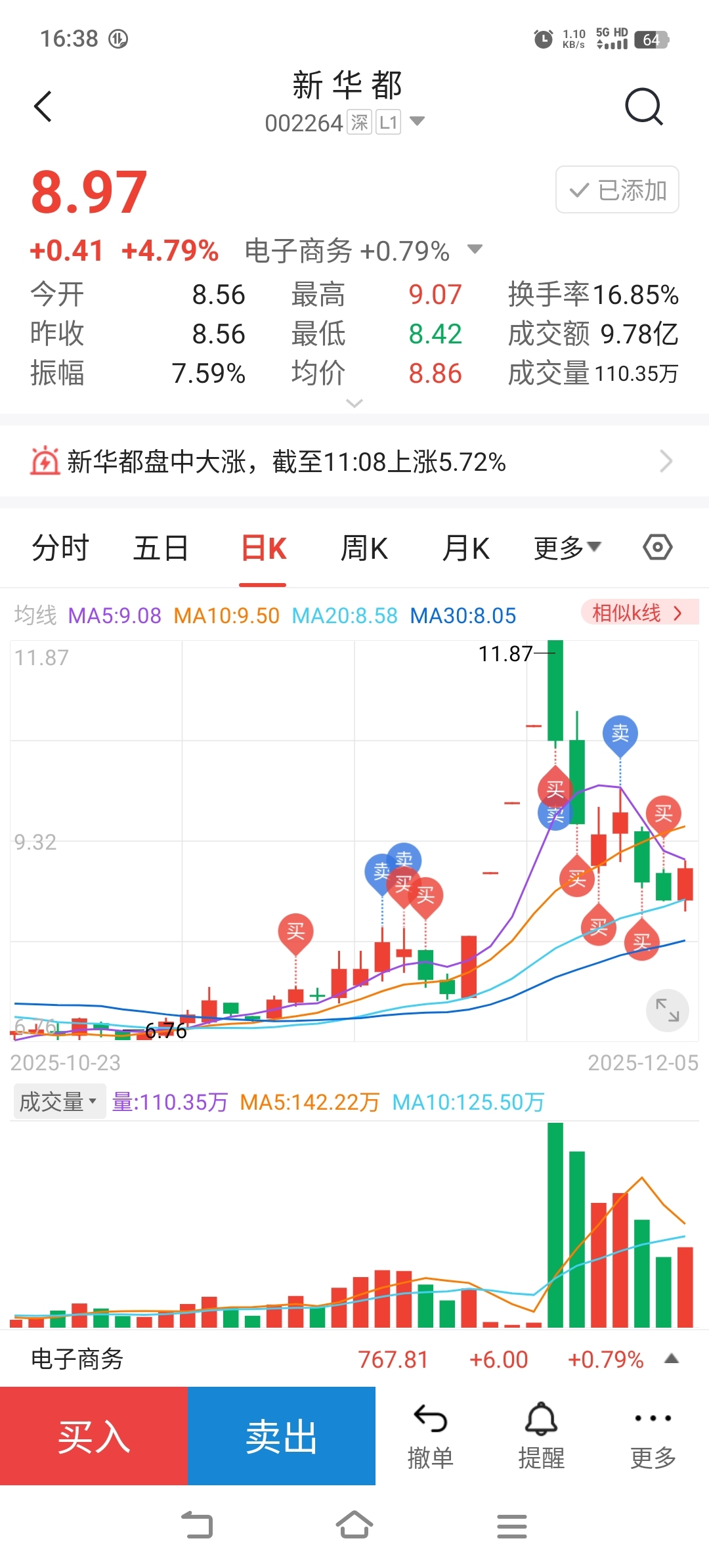 $新 华 都(SZ002264)$ 贴个图吧,无语,以为卡位龙,竟然是虫,不过当初介入原因也是博海南封关,不想连板上去,还以为鸿运当头傍上龙头#炒股日记#