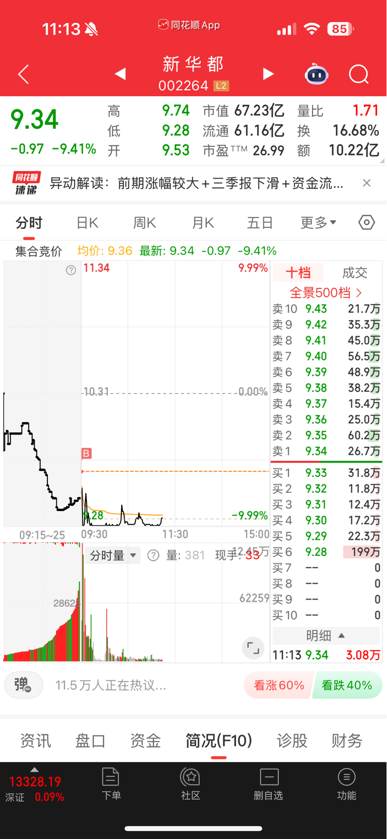 $新 华 都(SZ002264)$ 开盘买在9.7是什么水平,哈哈哈,我要自己把自己笑死了