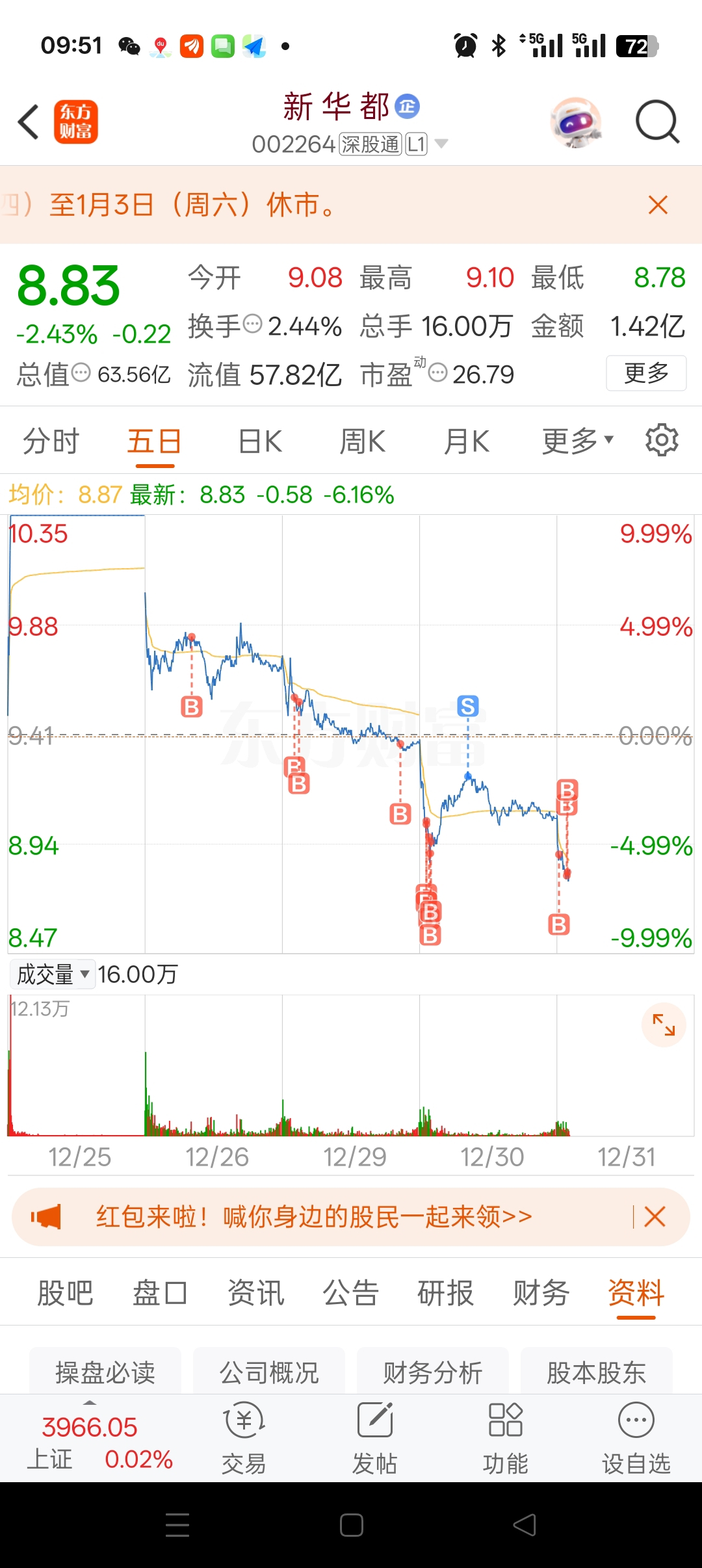 $新 华 都(SZ002264)$ 我兄弟们我还能顶得住,子弹还多呢?