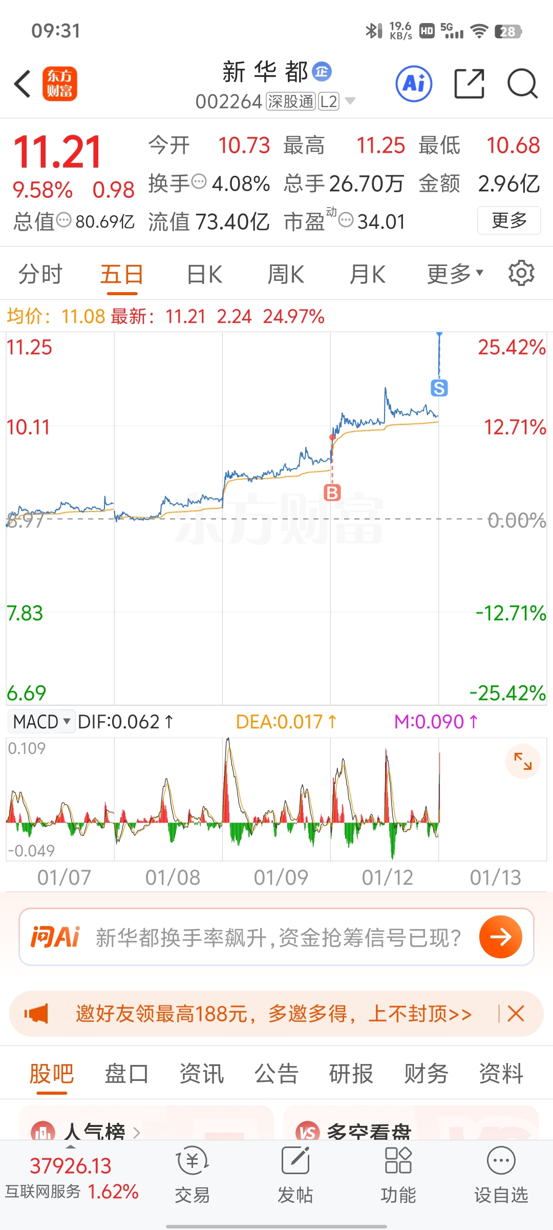 郑重声明:用户在财富号/股吧/博客等社区发表的所有信息(包括但不限于文字、视频、音频、数据及图表)仅代表个人观点,与本网站立场无关,不对您构成任何投资建议,据此操作风险自担。请勿相信代客理财、免费荐股和炒股培训等宣传内容,远离非法证券活动。请勿添加发言用户的手机号码、公众号、微博、微信及QQ等信息,谨防上当受骗!