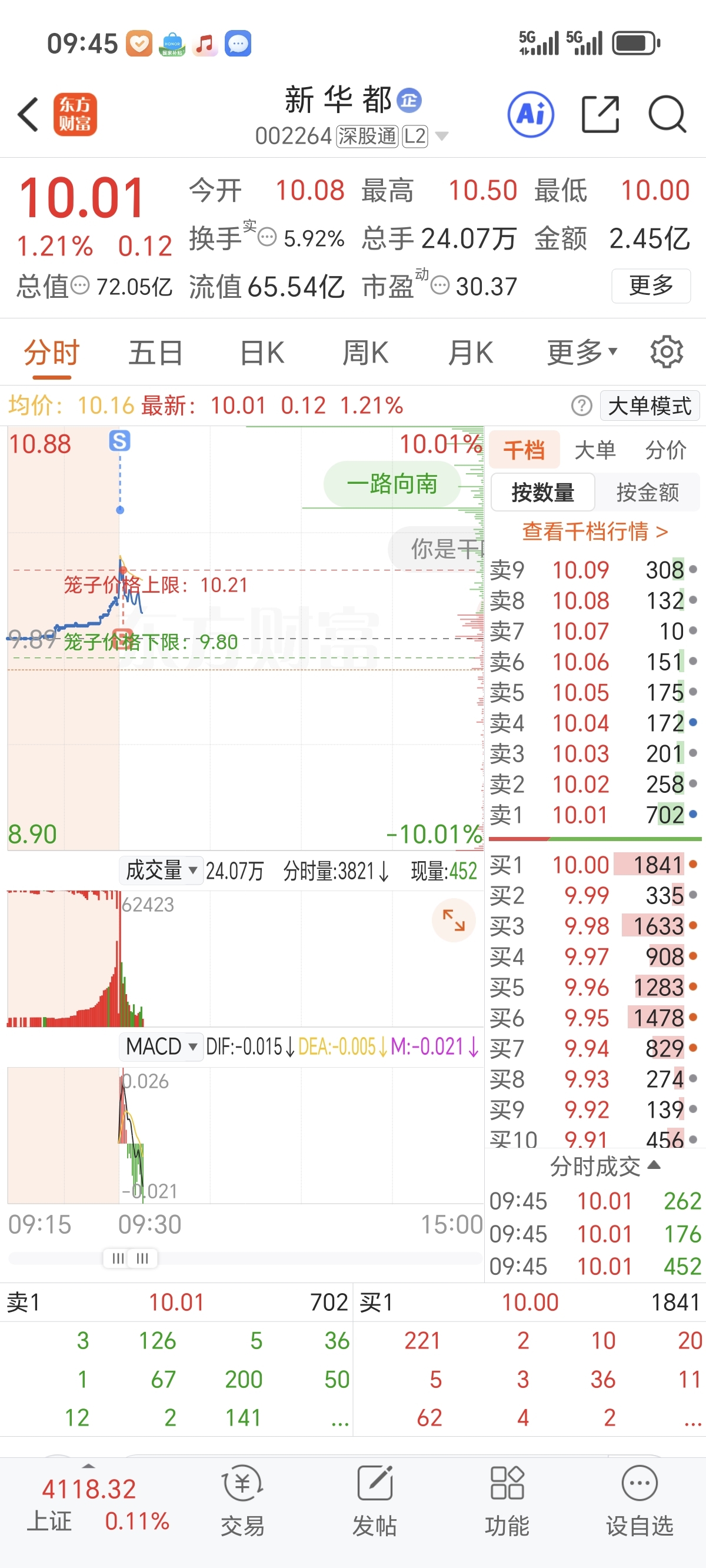 $新 华 都(SZ002264)$ ?钱又开始跑了?反正我动不了了!你跑吧!