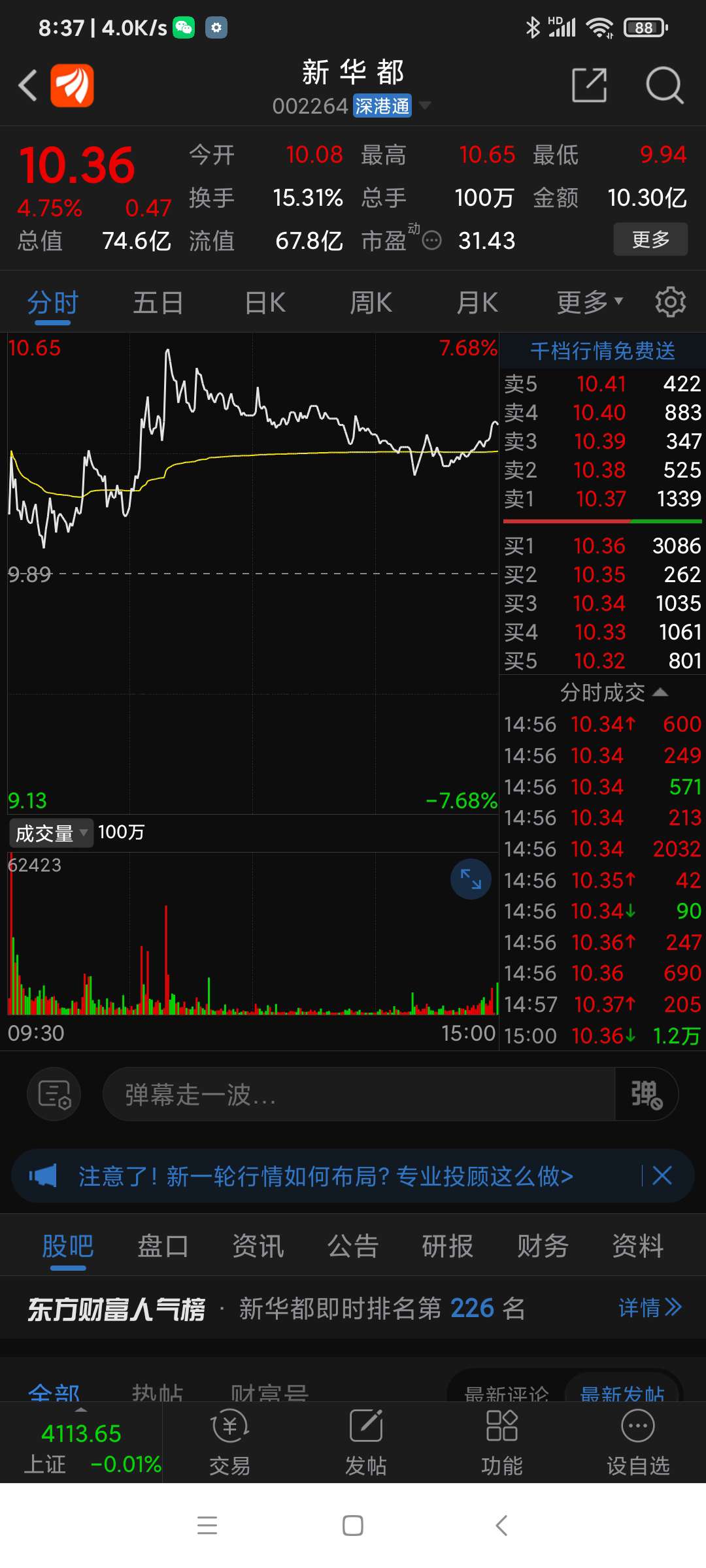 温馨提示: 1.根据《证券法》规定,禁止编造、传播虚假信息或者误导性信息,扰乱证券市场;2.用户在本社区发表的所有资料、言论等仅代表个人观点,与本网站立场无关,不对您构成任何投资建议。用户应基于自己的独立判断,自行决定证券投资并承担相应风险。《东方财富社区管理规定》