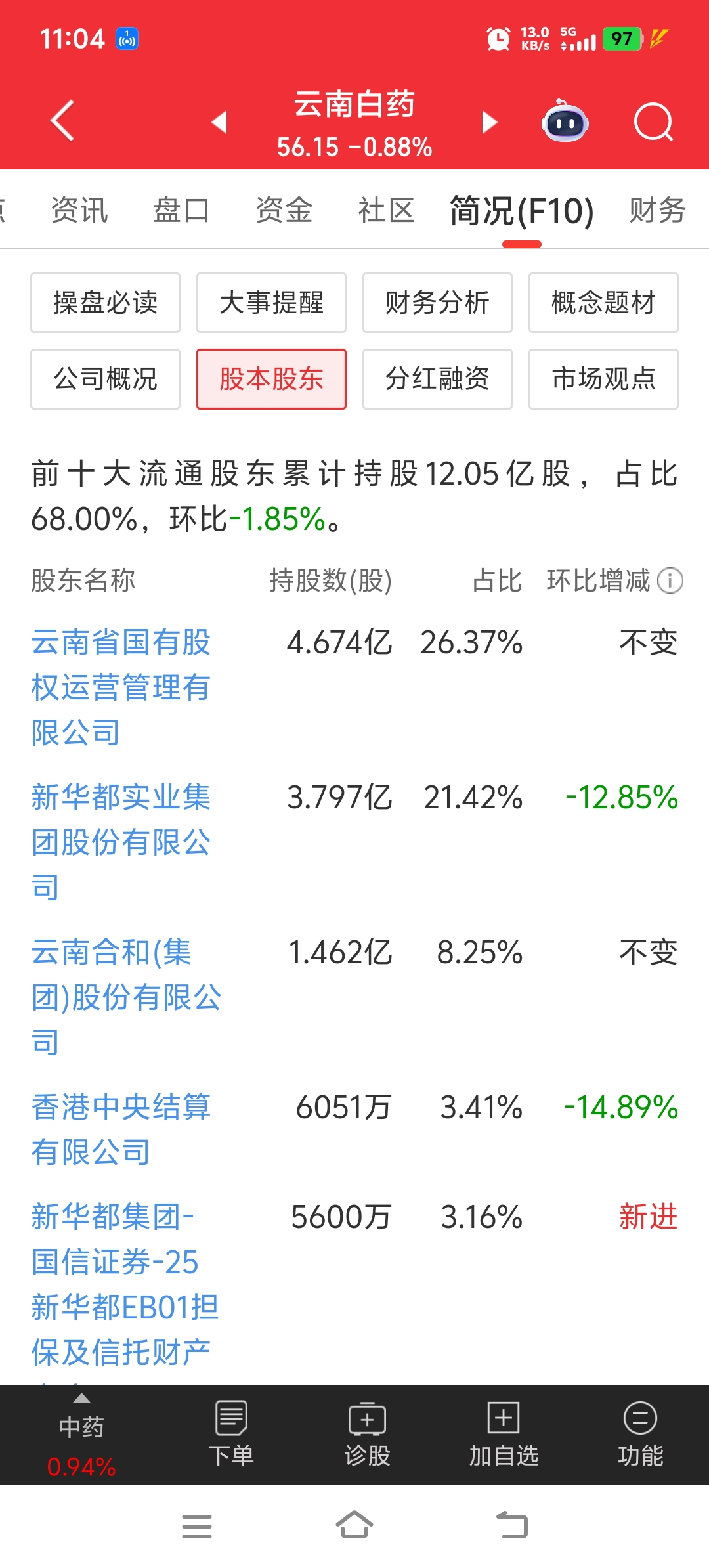 为什么一个几十亿市值的公司,有云南白药两百亿的股票?