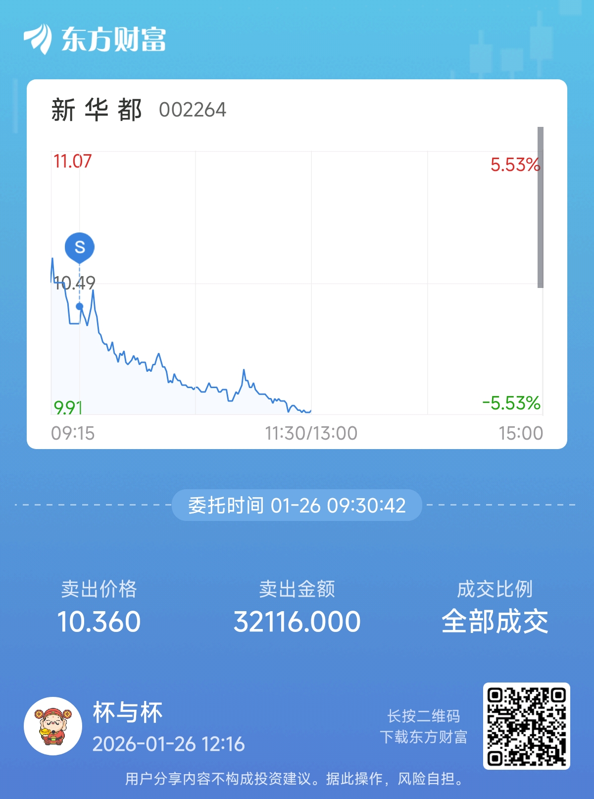 委托标的:买卖方向:笔记:新华都弱爆了,板块垫底的杂毛股,早盘卖掉是对的,反弹力