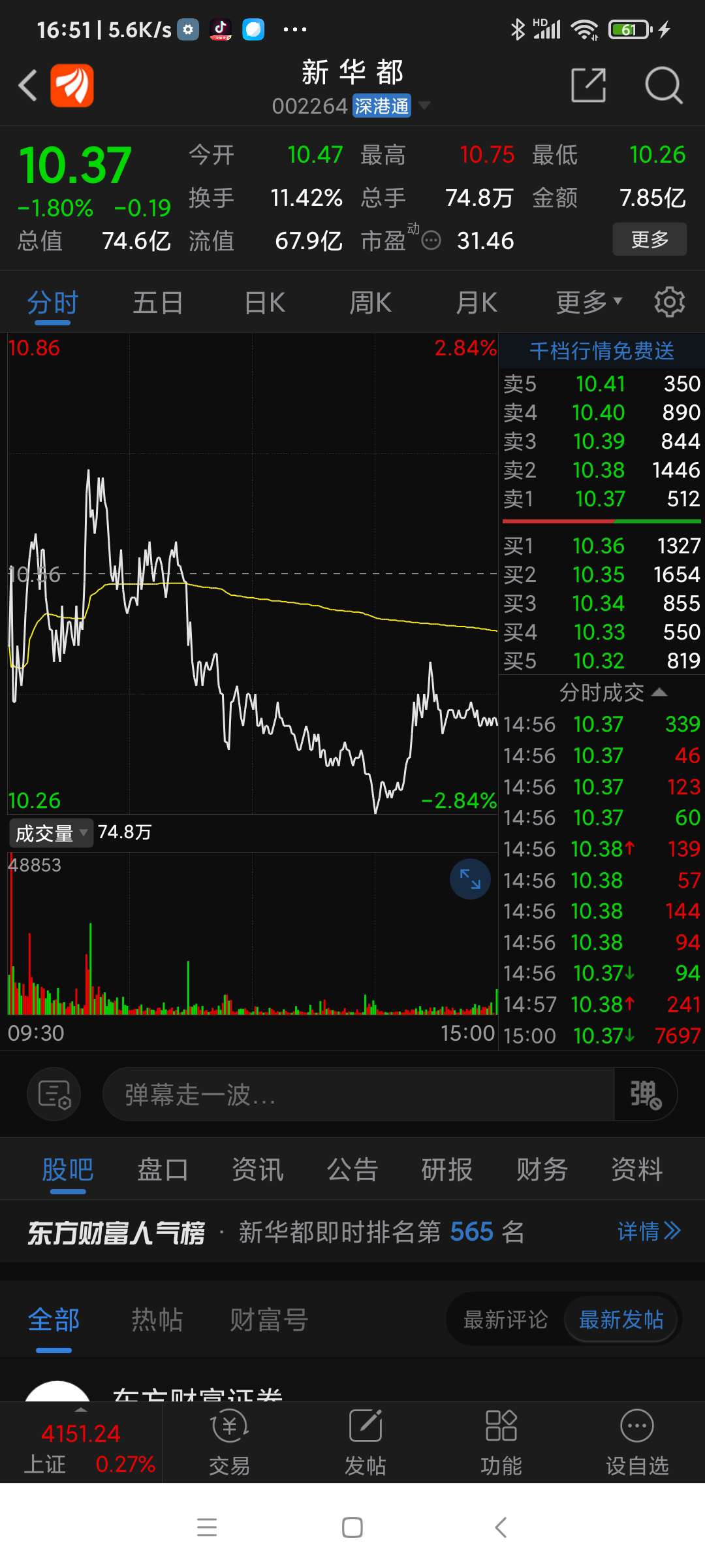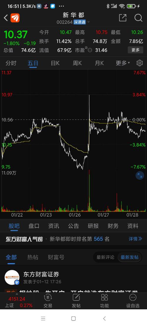 新华都,今日冲高回落。