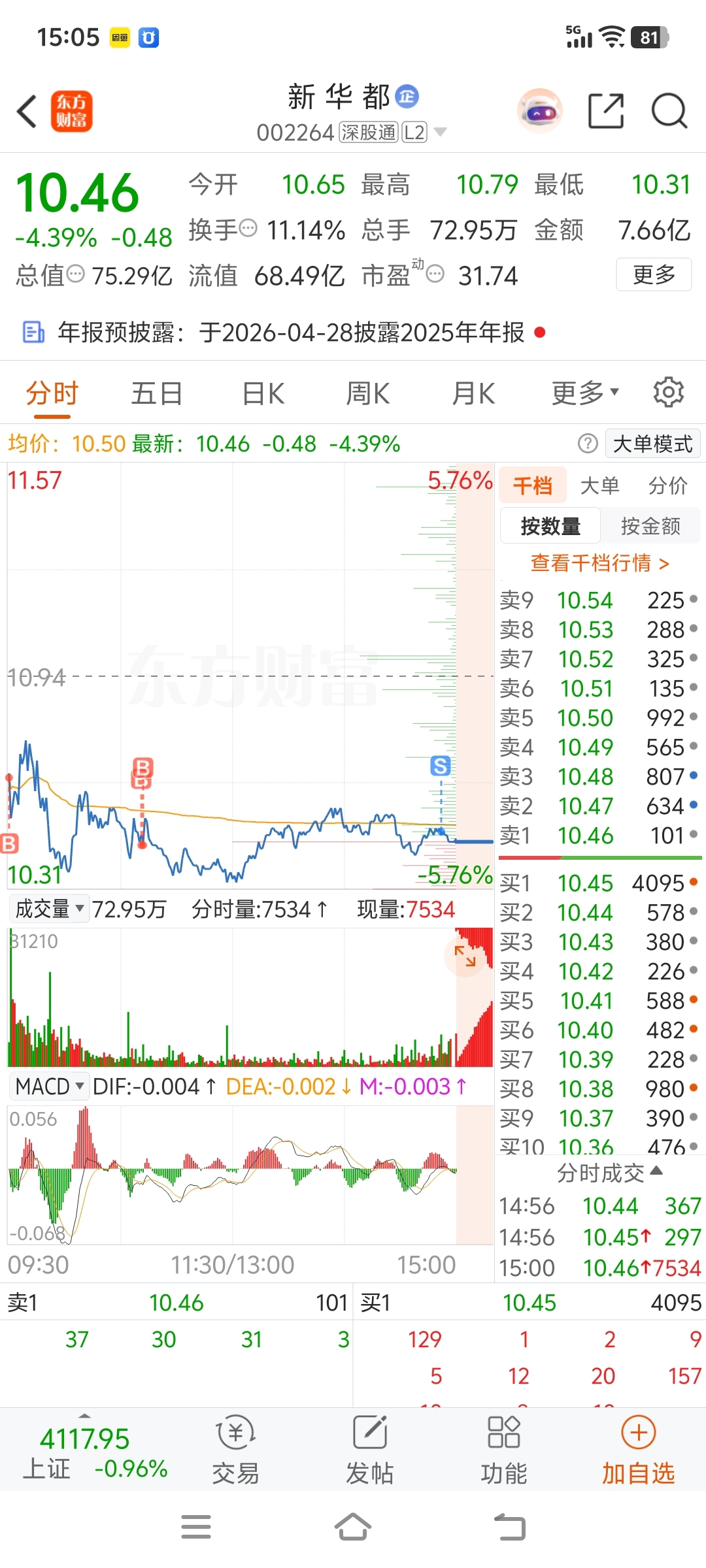 $新 华 都(SZ002264)$ 以为今天你会拉板,结果两阳夹一阴或两阴夹一阳走势,错了就要亡羊补牢,不能重仓陪你抱歉。