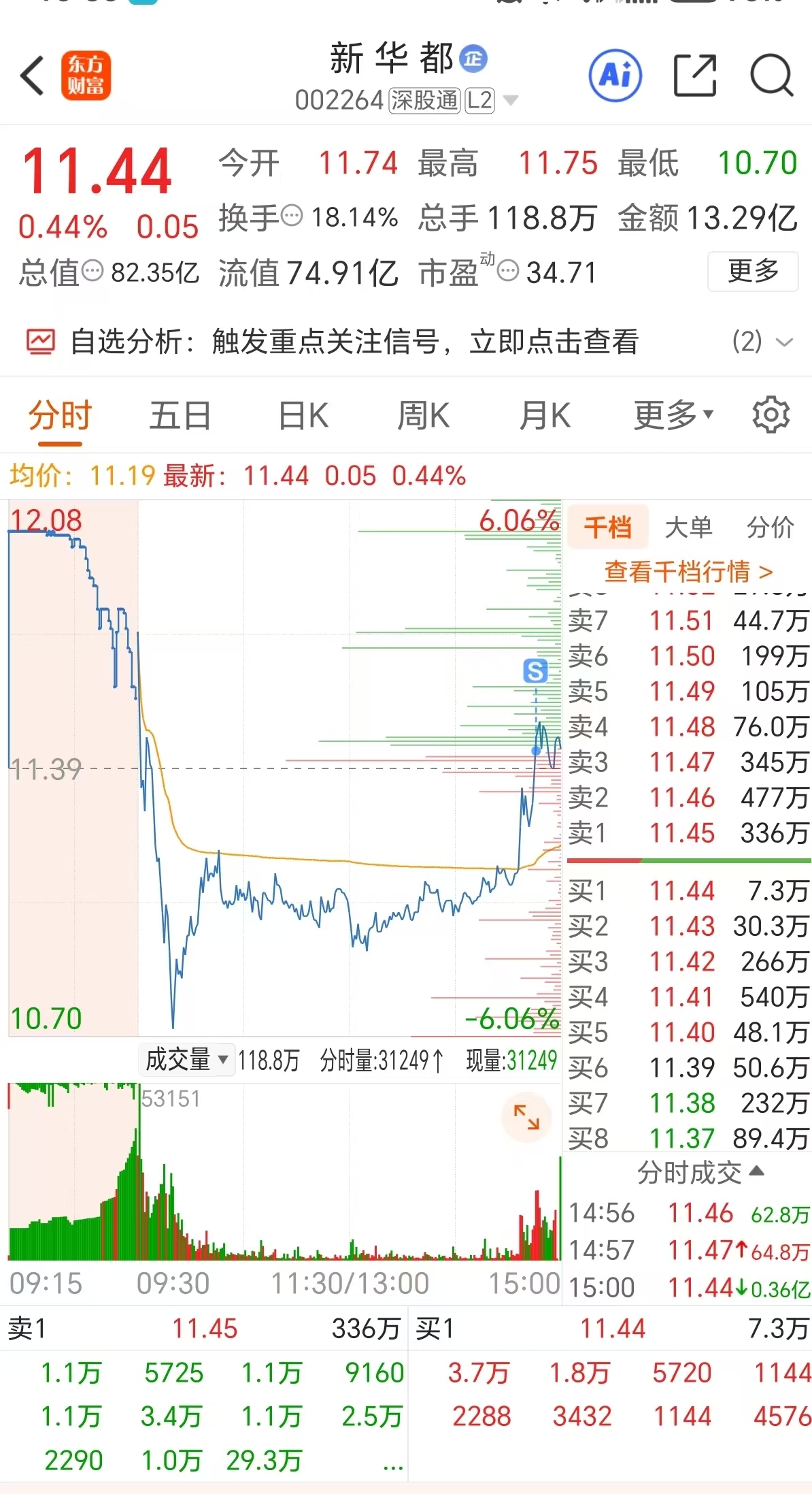 $新 华 都(SZ002264)$ 我知道你是在诱多,所以我跑了。祝留下的吃跌停。